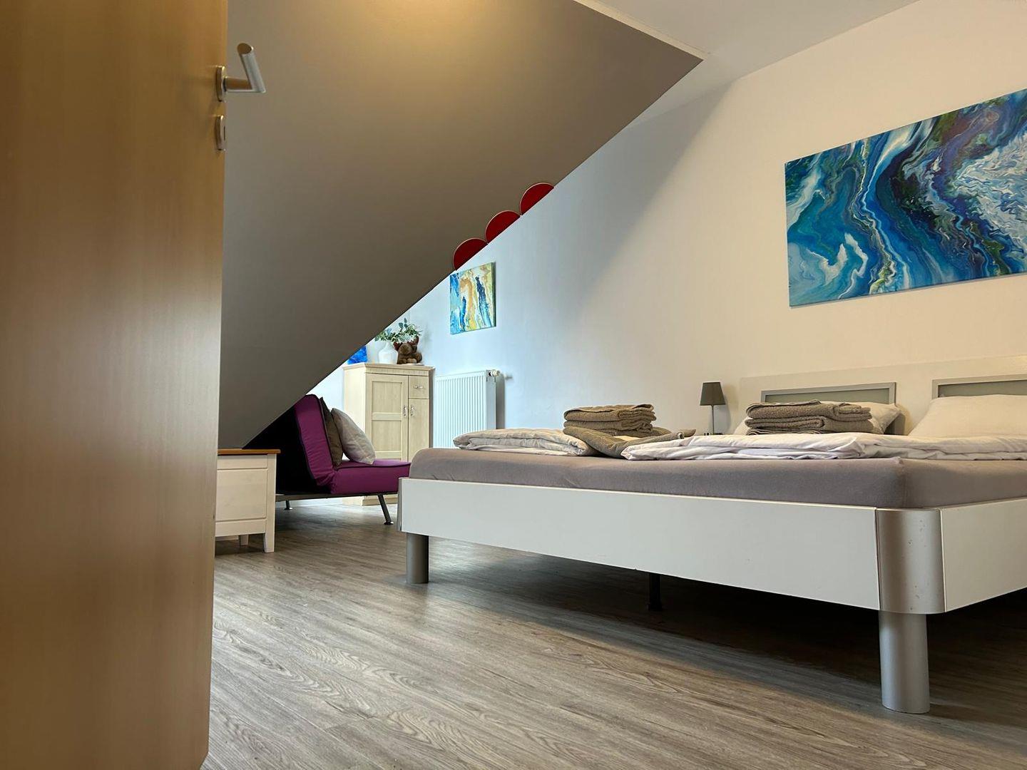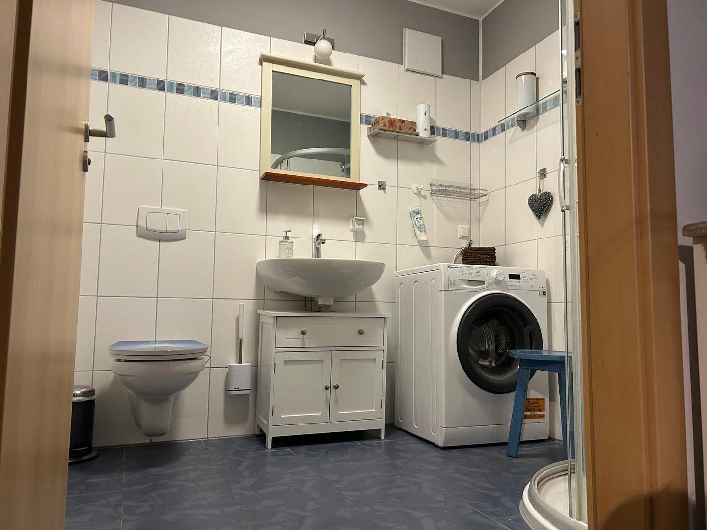 Im Schlafzimmer erwartet Sie ein komfortables Doppelbett sowie eine zusätzliche Schlafcouch – ideal für bis zu fünf Personen. Ein geräumiger Kleiderschrank sorgt für ausreichend Platz für Ihre Urlaubsgarderobe. Das helle Badezimmer ist mit einer ebenerdigen Dusche, Waschbecken und WC ausgestattet.
