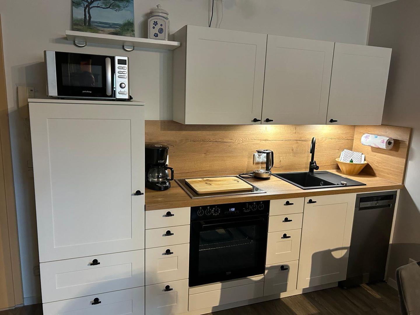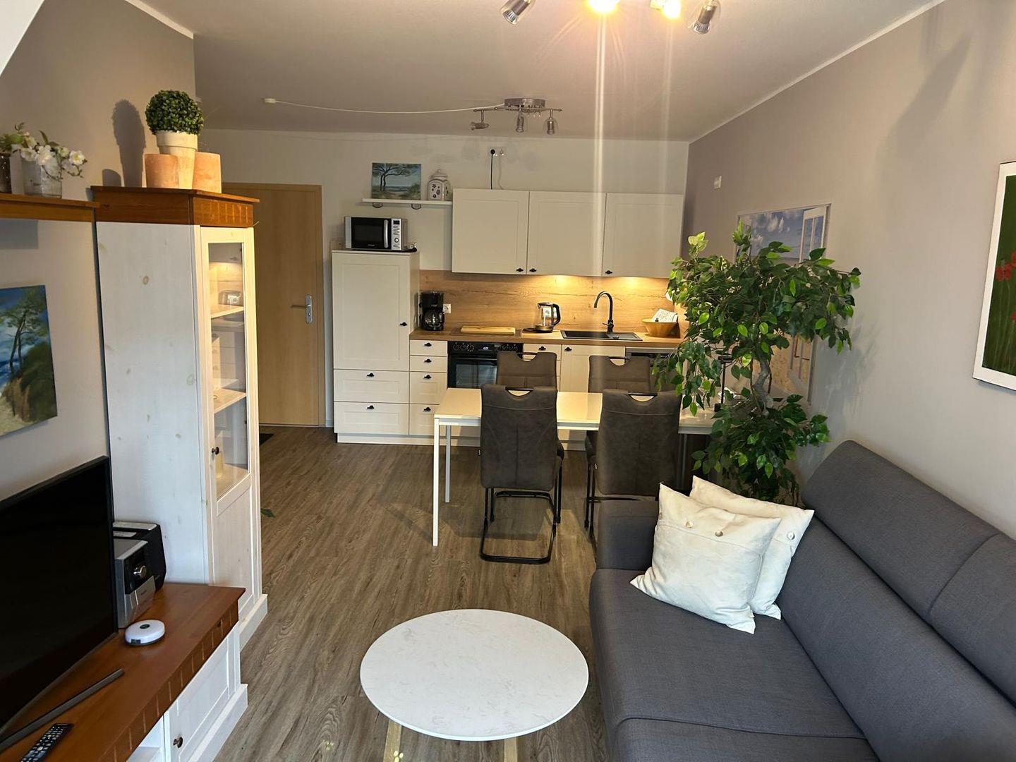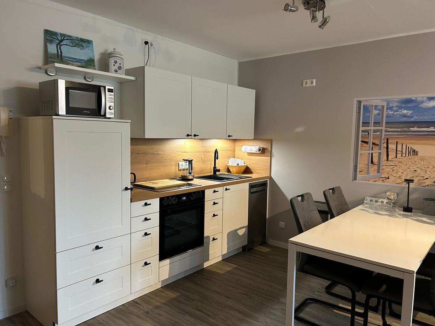 Die Wohnung überzeugt mit zwei stilvoll eingerichteten Räumen, die Ihnen alles bieten, was Sie für einen erholsamen Aufenthalt brauchen. Der moderne Wohnbereich lädt mit gemütlichem Sofa (mit Schlaffunktion) und großem Flachbild-TV zu entspannten Abenden ein. Die angrenzende voll ausgestattete Einbauküche mit Geschirrspüler, Herd, Kühlschrank, Kaffeemaschine und Toaster lässt keine Wünsche offen.