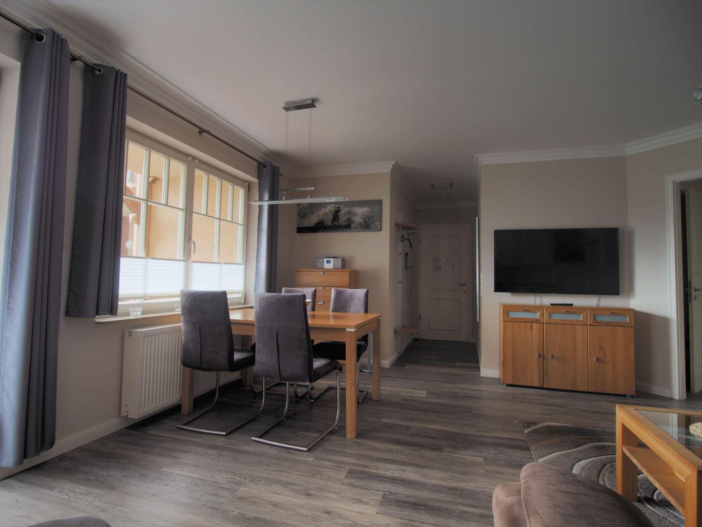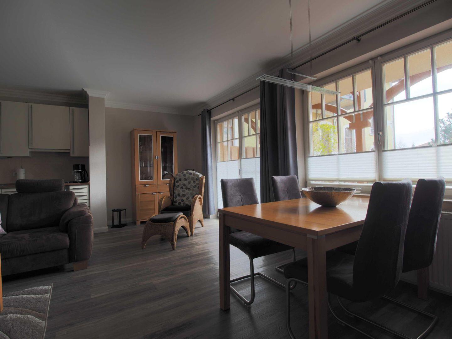 Moderne Ferienwohnung in Kühlungsborn mit Terrasse, Tiefgaragenstellplatz und offenem Wohnbereich für 4 Personen.