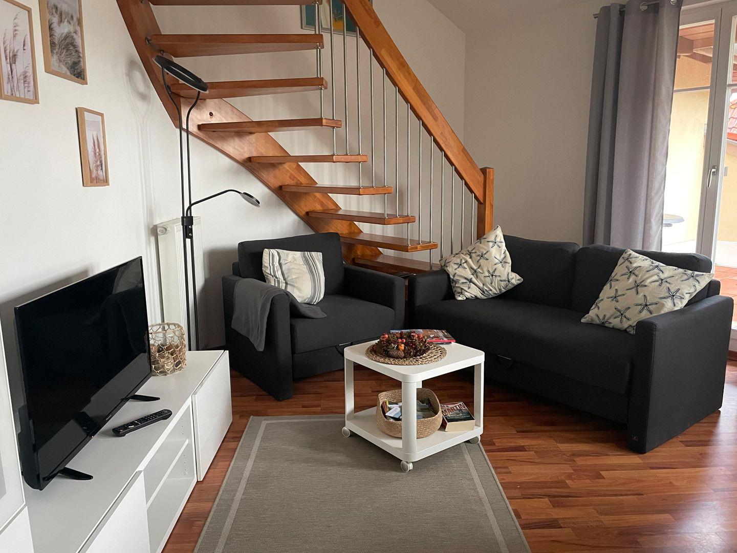 Willkommen in Ihrem besonderen Urlaubszuhause! Dieses stilvolle, ca. 75 m² große Maisonette-Appartement mit Balkon im Dachgeschoss eines Neubaus bietet Platz für 4 Personen und heißt auch Ihren Hund herzlich willkommen.
