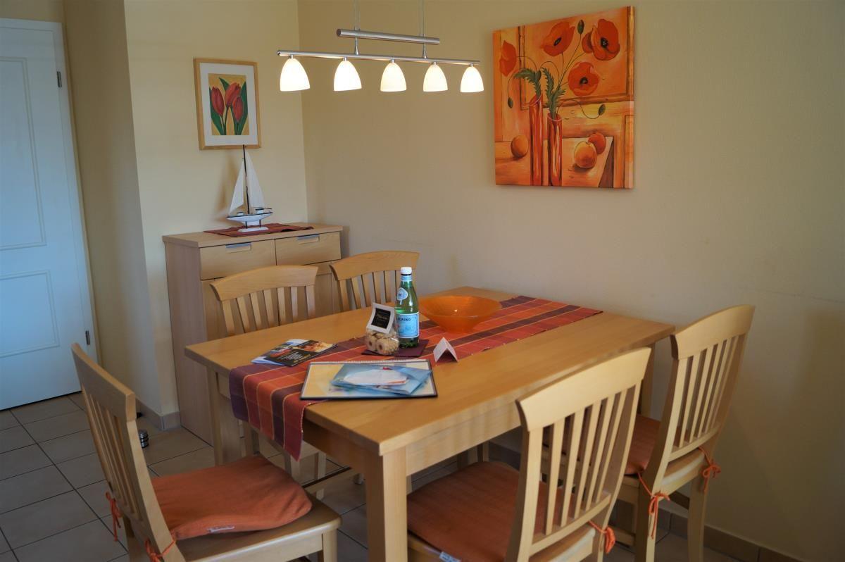 Die Wohnung ist in warmen Farbtönen gehalten und mit hochwertigem Mobiliar ausgestattet. Neu ist die schöne Sitzcouch, die sich als zusätzliche oder alternative Schlafstätte umwandeln lässt. Die Küchenzeile ist ausgestattet mit einem Cerankochfeld, einem Backofen, Kühlschrank mit TK-Fach sowie einer Mikrowelle. Eine Geschirrspülmaschine macht die Ausstattung komplett.