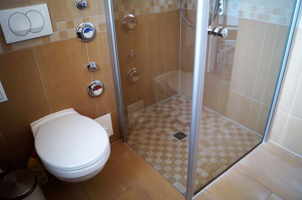 Des Weiteren verfügt die Wohnung über ein geräumiges Tageslicht-Badezimmer mit einer Dusche und einem WC. Außerdem gibt es ein separates Gäste-WC. Hochwertige Armaturen, Duschwände aus Echtglas sowie ein Handtuchhalter-Heizkörper sorgen für den kleinen Luxus am Morgen. Auch ein Fön ist vorhanden.