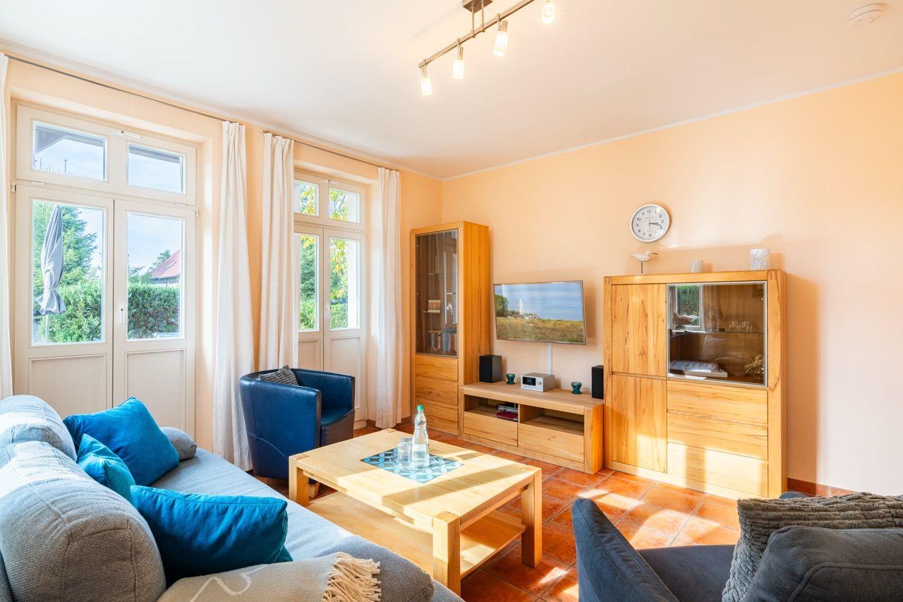 Die Wohnung befindet sich im Erdgeschoss der Villa Bismarck. Von hier sind die Geschäfte, Bäcker, Restaurants und Cafés bequem fußläufig zu erreichen (max. 5 Gehminuten). Der Strand befindet sich in nur 300-Meter Entfernung.
