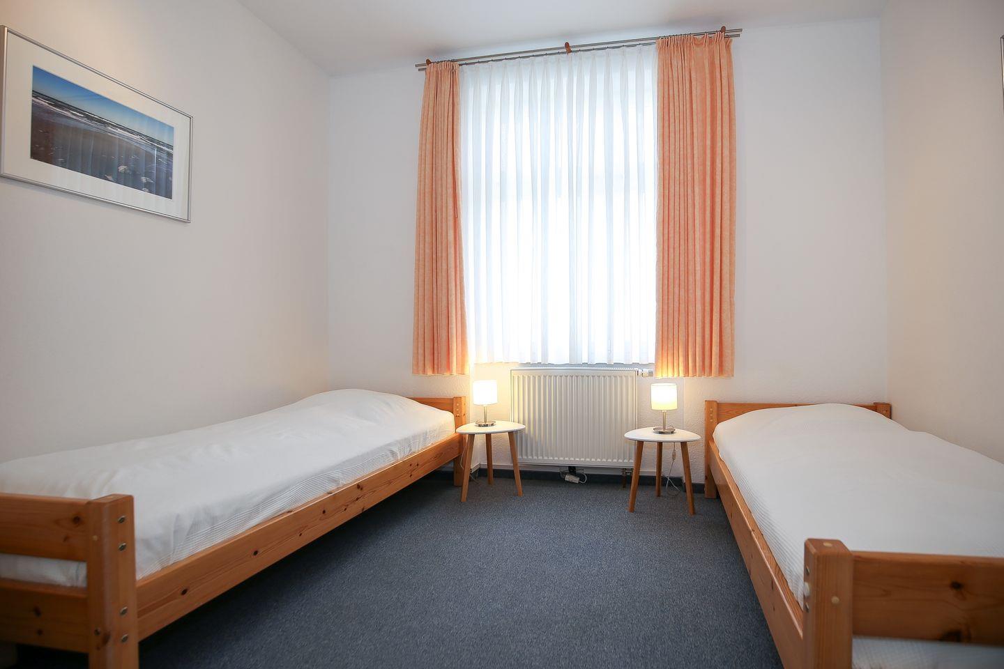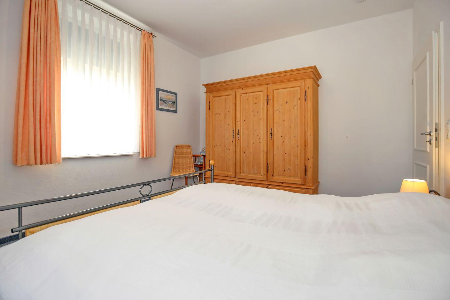 Im hellen Schlafzimmer lädt dich ein komfortables Doppelbett (2 x 90 x 200 cm) zur Nachtruhe ein. Ein Kleiderschrank bietet dir ausreichend Stauraum für deine Sachen. Das zweite Schlafzimmer ist für 2 weitere Personen mit 2 Einzelbetten (je 90 x 200 cm) und einer Kommode eingerichtet. In den Schlafzimmern kannst du Vorhänge als Sichtschutz oder zum Verdunkeln verwenden.