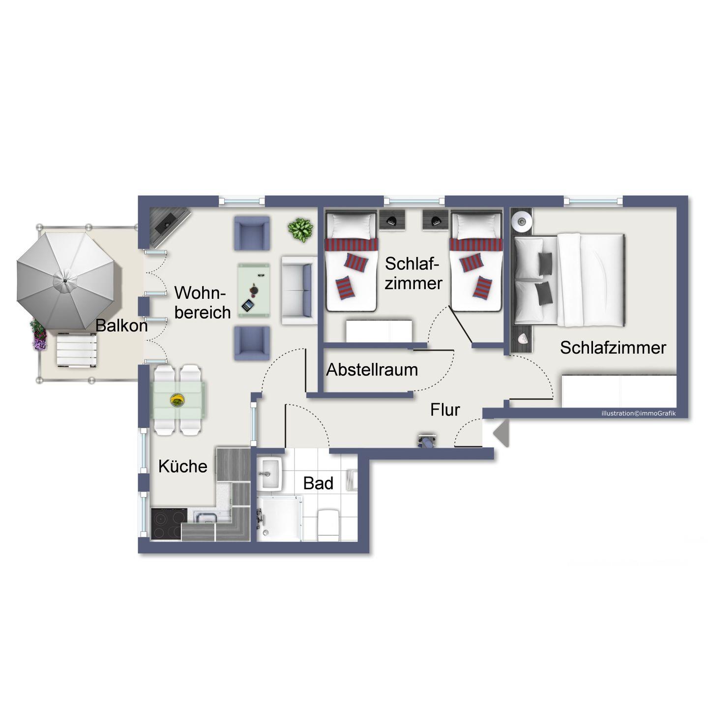 Die 3-Zimmer-Ferienwohnung befindet sich im 1. Obergeschoss der „Villa Bismarck“ und erwartet dich mit einem Balkon mit West-Ausrichtung. Die Wohnung bietet auf 65 m² bis zu 4 Personen Platz für einen schönen Ostseeurlaub und ist für dich in einen Wohn- und Essbereich, eine Küchenzeile sowie zwei Schlafzimmer und ein Duschbad aufgeteilt.