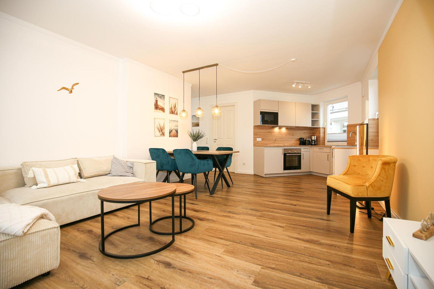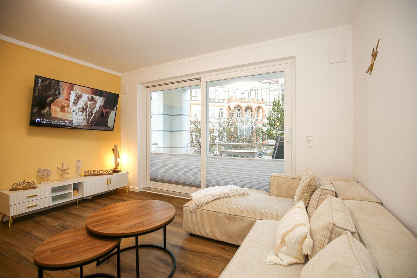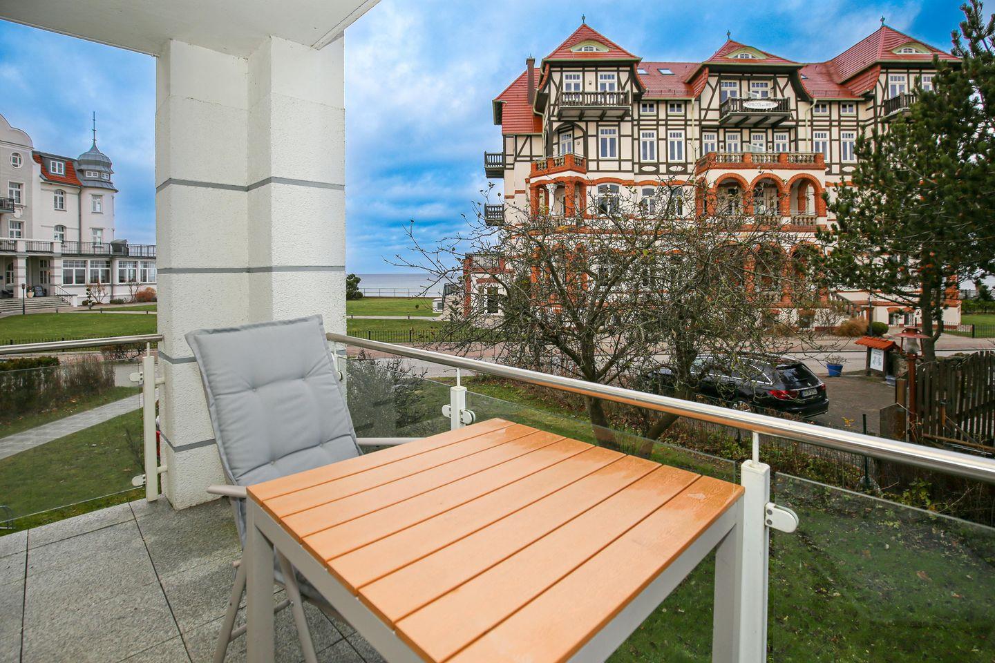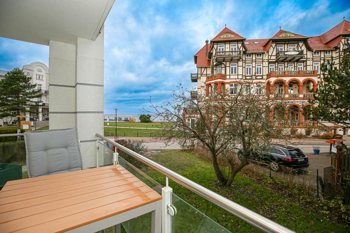 Moderne 2-Zimmer-Ferienwohnung mit Meerblick und Balkon, nur 50 Meter vom Strand in Kühlungsborn entfernt.