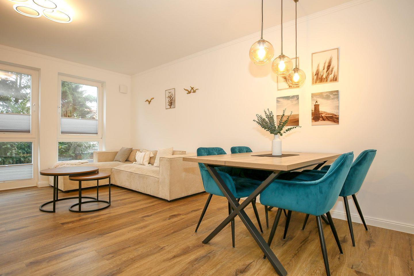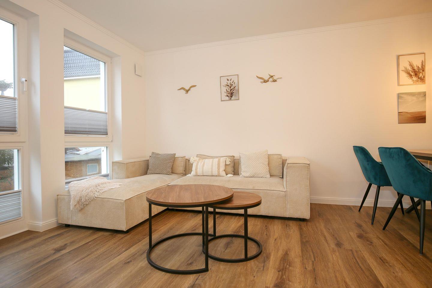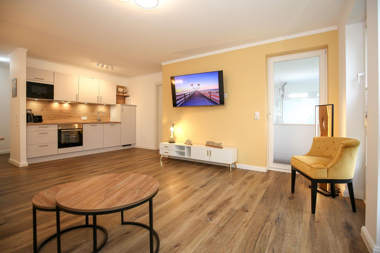 Moderne 2-Zimmer-Ferienwohnung mit Balkon und Ostseeblick, nur 50 m vom Strand in Kühlungsborn-West.