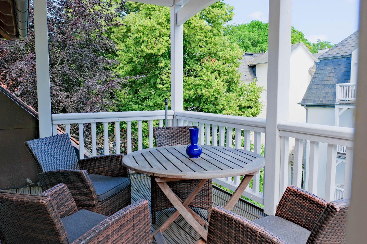 Die Ferienwohnung Sonnenburg 13 in Kühlungsborn bietet stilvolles Wohnen direkt an der Ostseepromenade mit Balkon und Meeresblick.