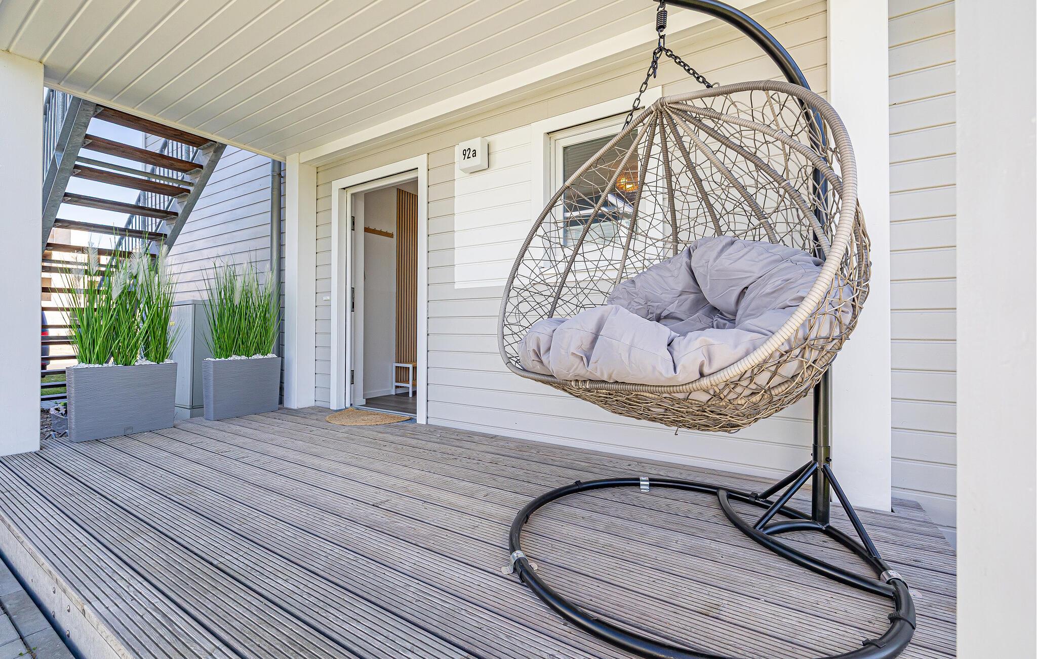 Direkt angrenzend an den im Skandi-Flair eingerichteten Wohnbereich grenzt die großzügige Terrasse, die zum Sonnenbaden und Entspannen einlädt. Die Terasse der Wohnung bietet auch die abendliche Sonne. Oder lieber ein gemeinsamer Abend zwischen Gesellschaftsspielen und Kochvergnügen?
