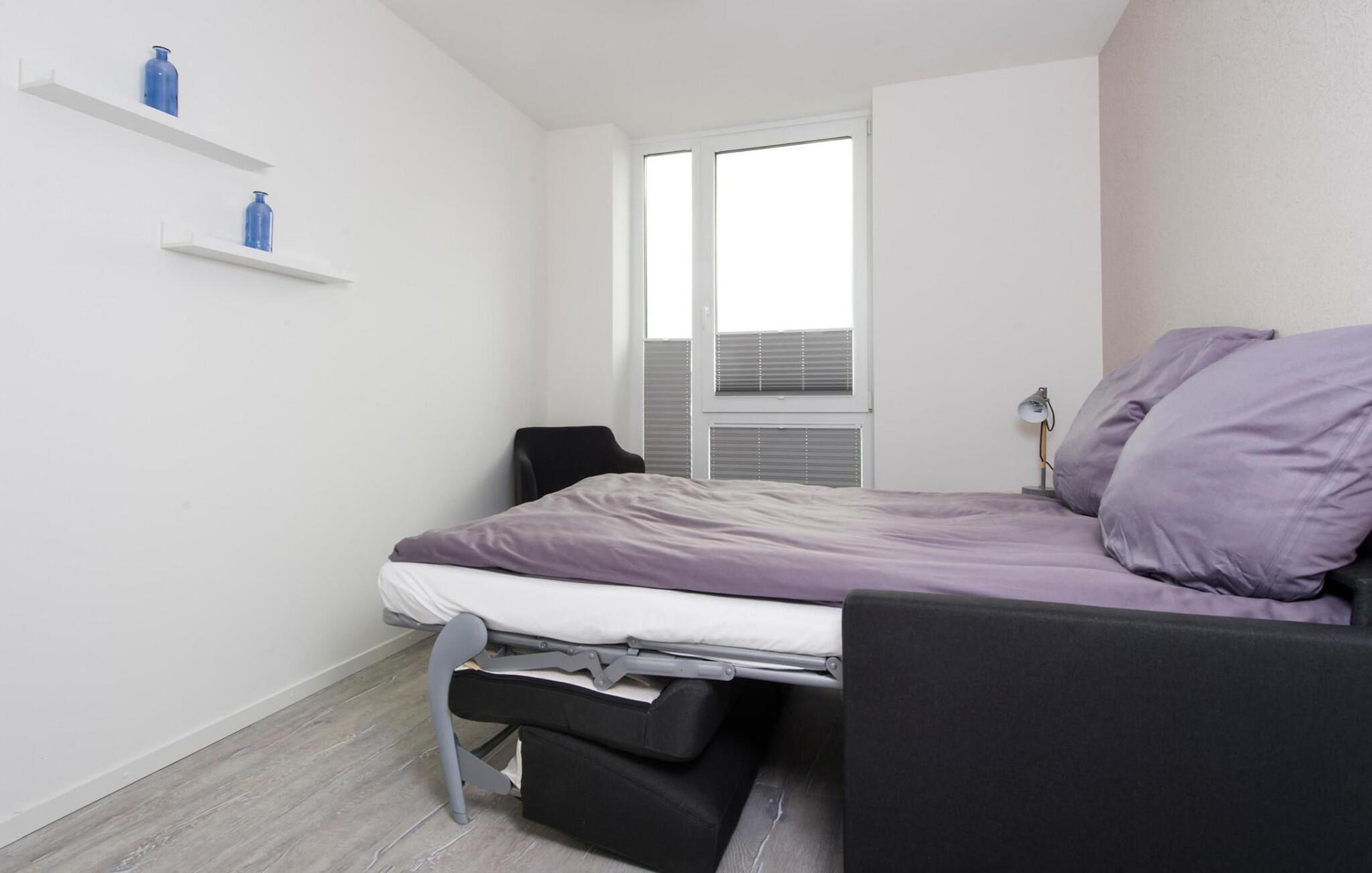 Zwei Schlafzimmer überzeugen mit einem Blick auf die Marina des OstseeResorts und bieten Platz für vier Erwachsene. Der an beide Zimmer angrenzende Balkon lädt zum Relaxen mit ganztags Sonne ein. Zwei weitere Schlafplätze stehen auf einer komfortablen Schlafcouch im dritten Schlafzimmer bereit.