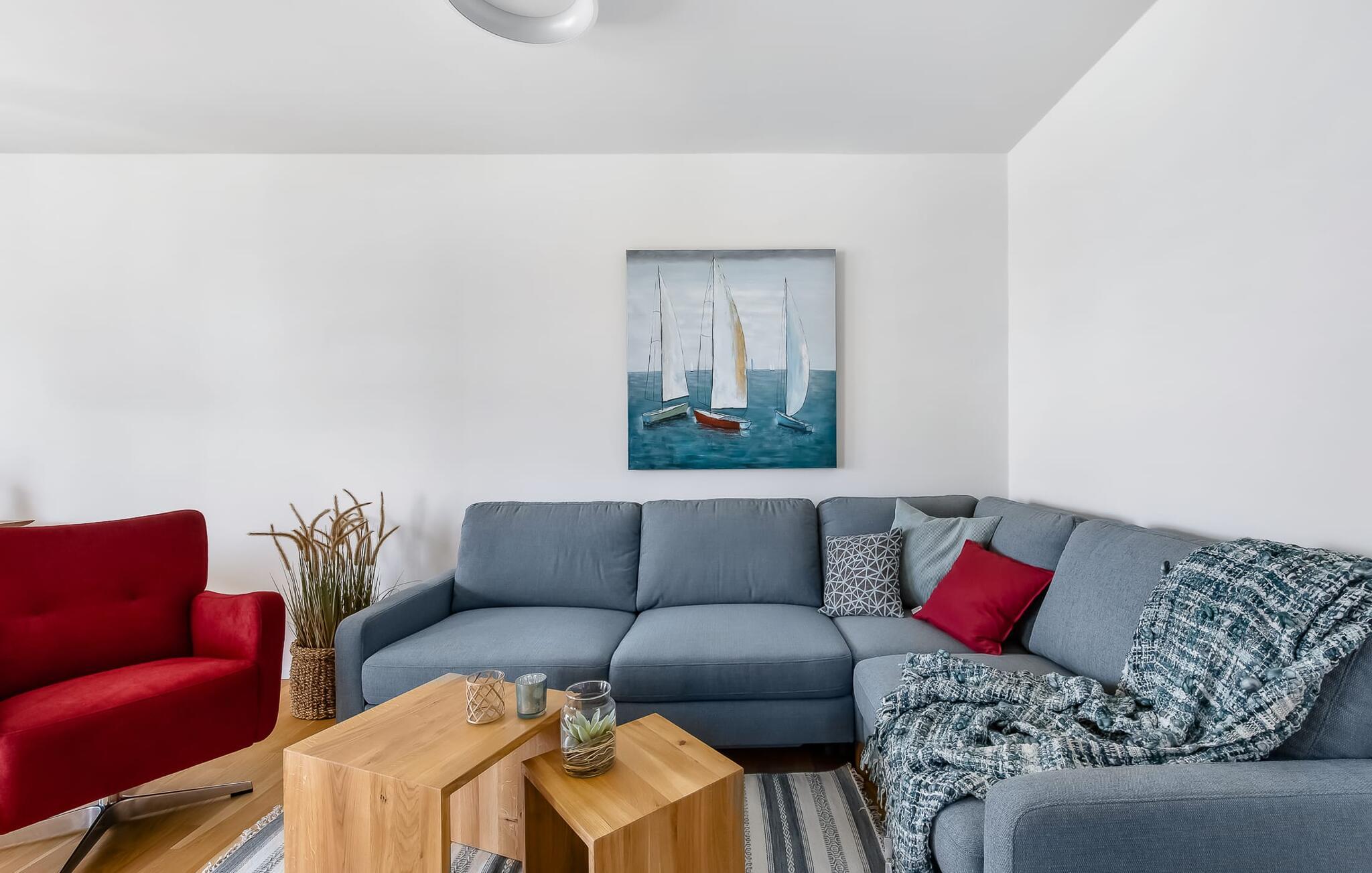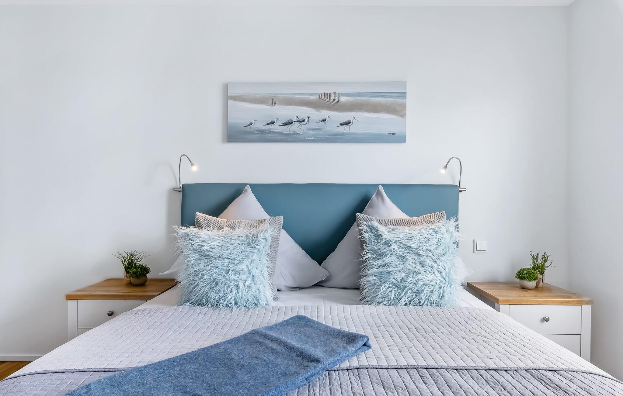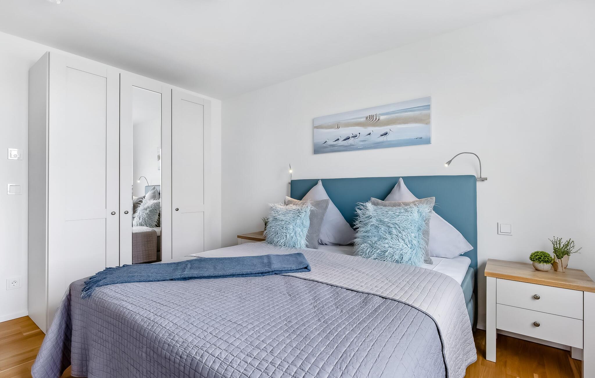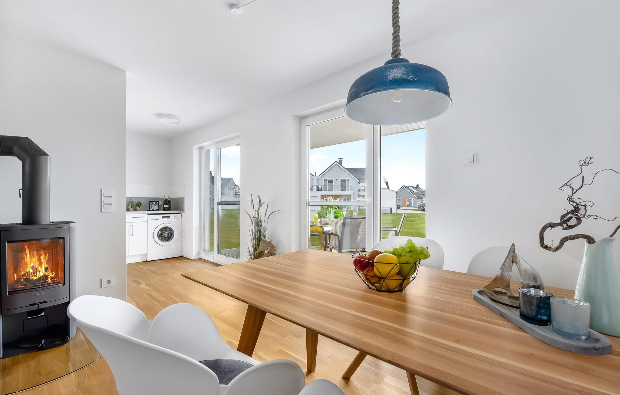 Das KÜSTENKIND ist eine großzügig geschnittene Ferienwohnung im Erdgeschoss, die ihr direkt über zwei Terrassen betreten könnt. Entspannter kann ein Sommerleben nicht sein. Im nordisch-maritimen Stil eingerichtet, strahlt jeder Raum Gemütlichkeit aus. Der offene Wohn- und Essbereich mit angrenzender Küche besticht durch die bodentiefen Fensterelemente und den Blick in die Ferne. Sowohl von der Küche als auch vom Wohnraum gelangt man auf die zweite Terrasse, wo es sich genüsslich speisen und entspannen lässt.
