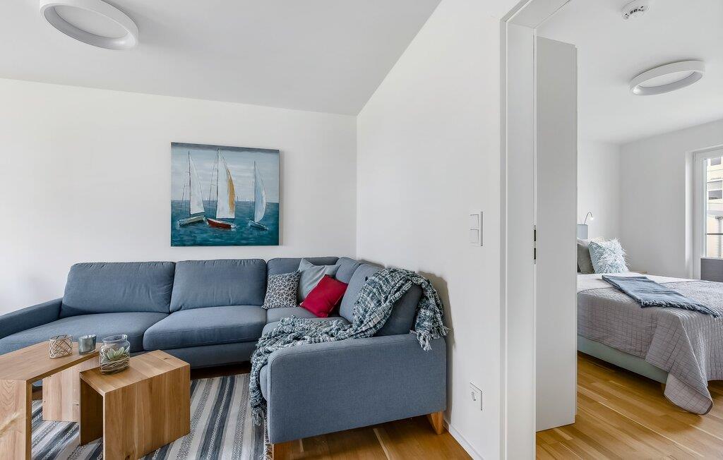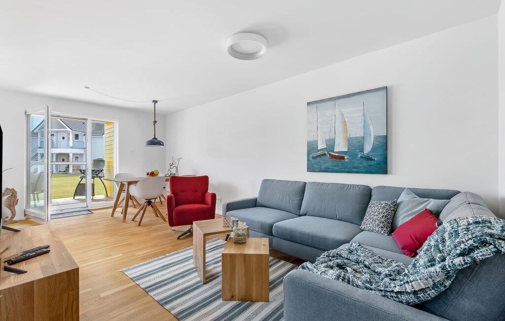 Gemütliche Ferienwohnung Küstenkind mit Meerblick und Sauna im OstseeResort Olpenitz für erholsamen Familienurlaub.