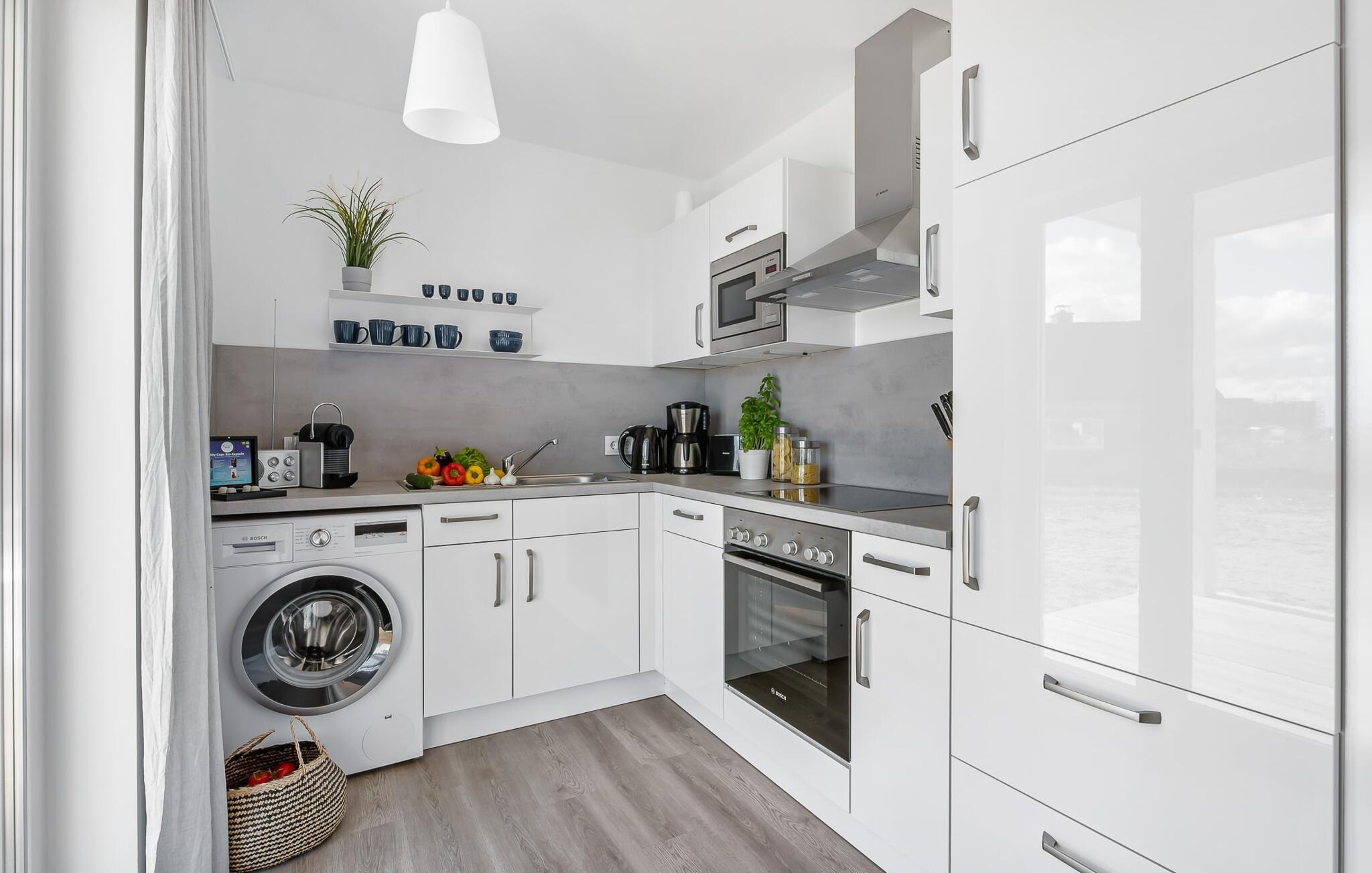 Die Einbauküche lässt keine Wünsche offen und kreatives Kochen wird hier ganz schnell zum neuen Hobby.