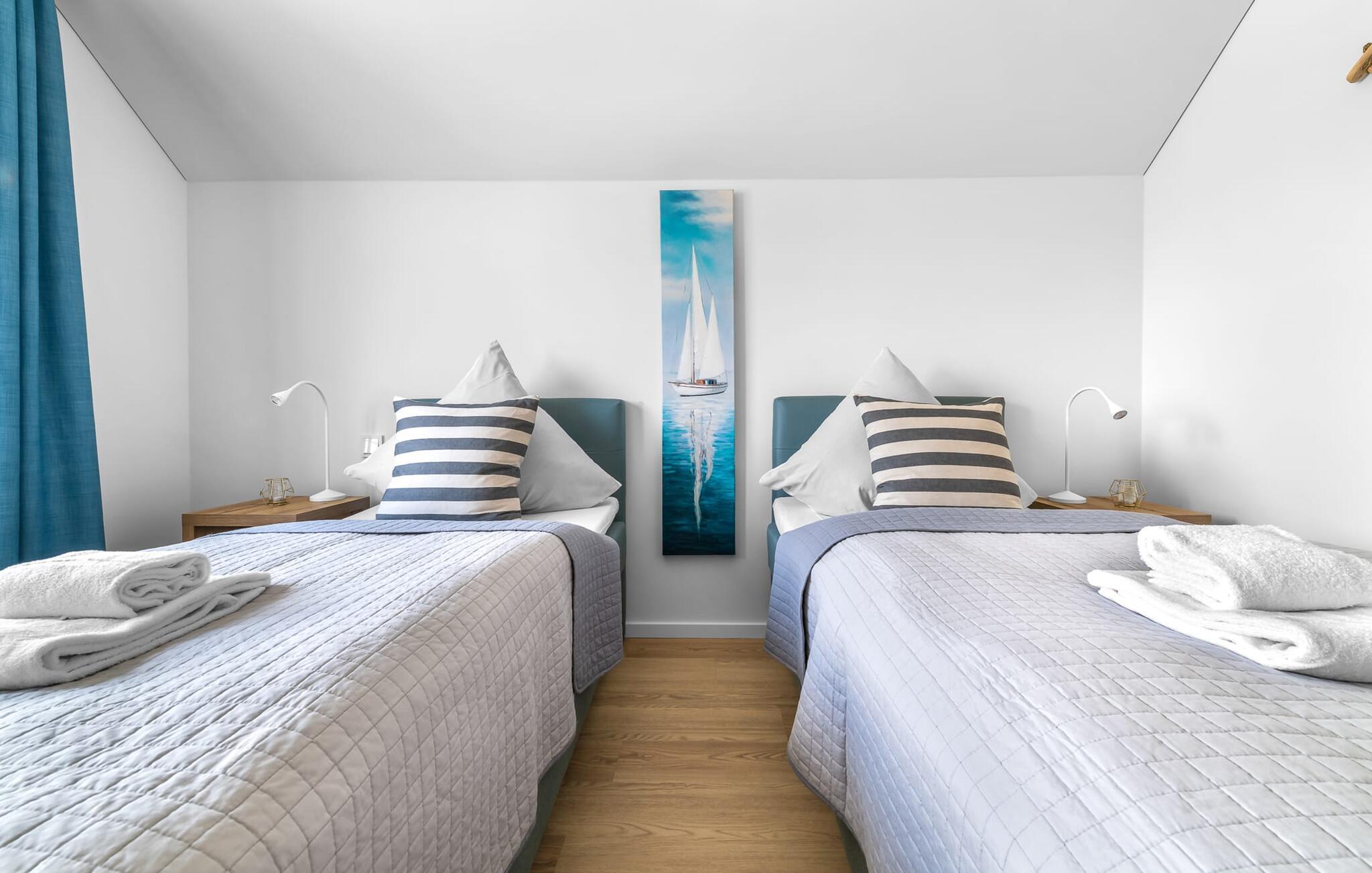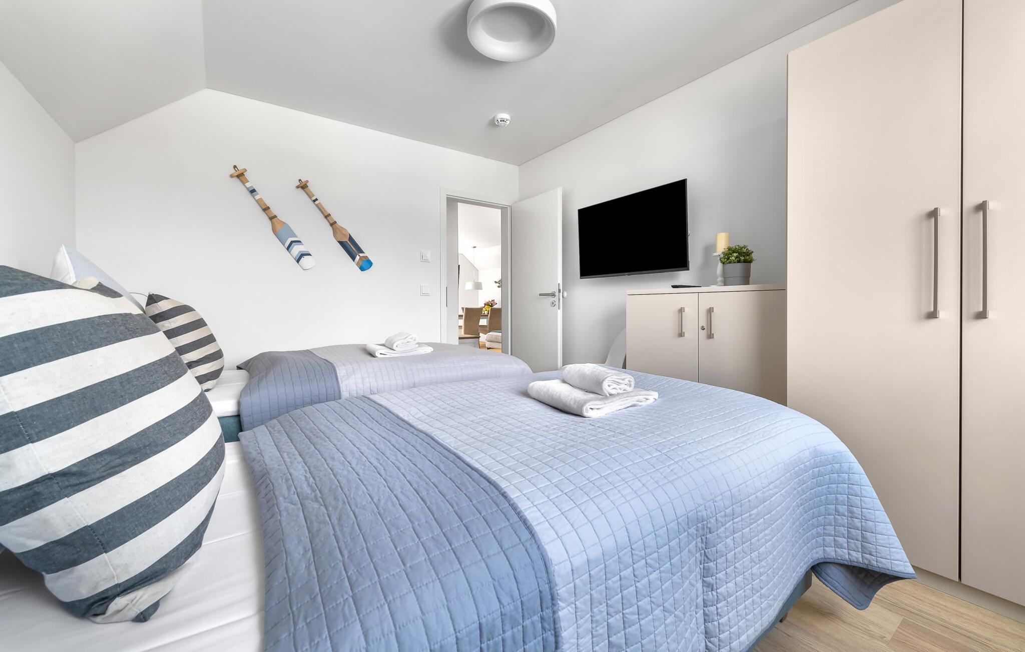 Die Wohnung verfügt über zwei komfortable Schlafzimmer, die Ruhe und Erholung garantieren. Der Komfort wird im Bad durch bodengleiche Dusche und eigener Infrarotkabien abgerundet.