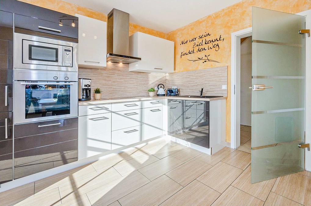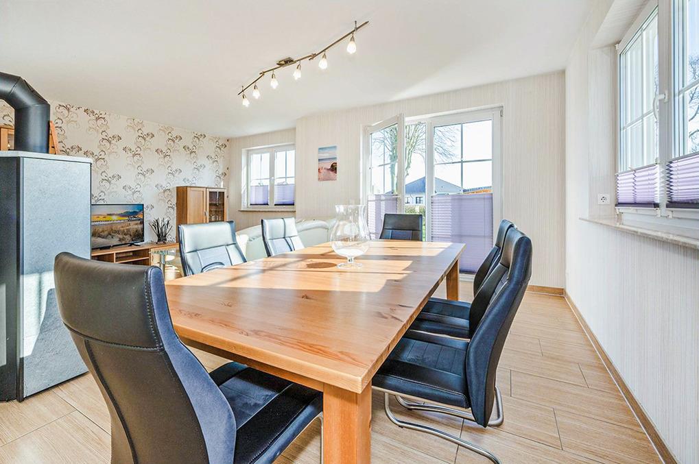 Haus: Komfortables Ferienhaus mit Kaminofen und separater Ferienwohnung (D 28.61). Moderne, geschmackvolle Einrichtung. Kostenloser Internetzugang über W-Lan. Fußbodenheizung. Großzügige Terrasse mit Sitzmöbeln. Schönes Gartengrundstück. Fahrradschuppen. 2 Pkw-Stellplätze am Haus.