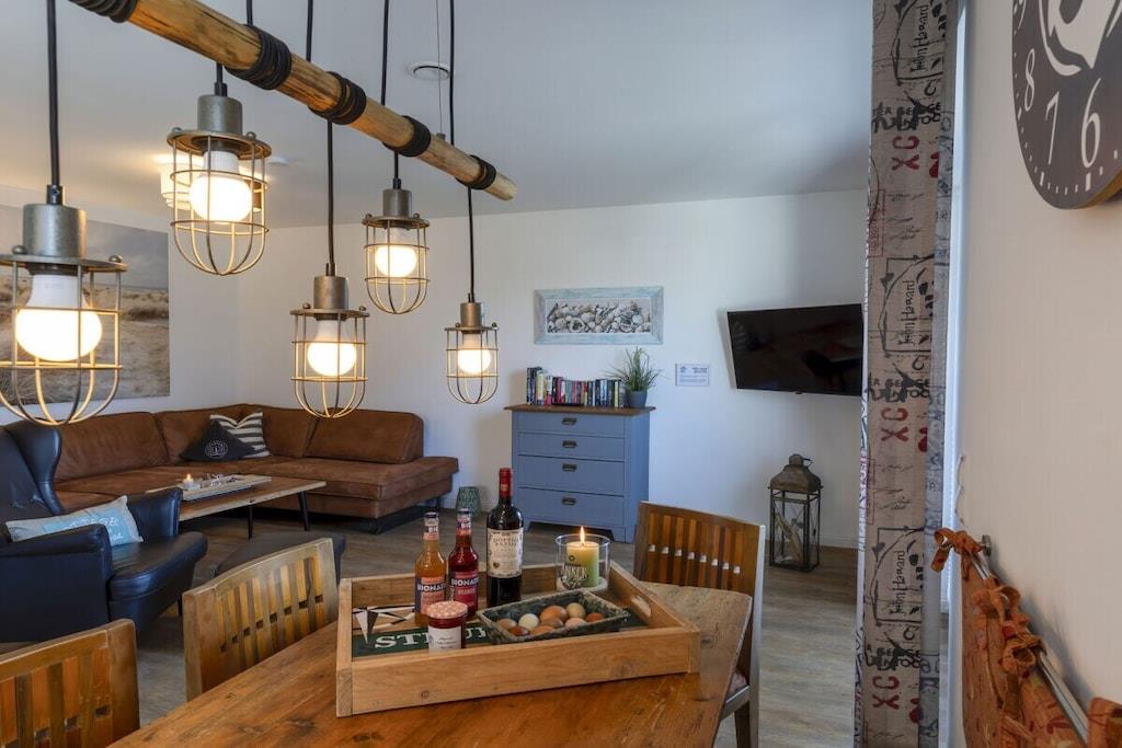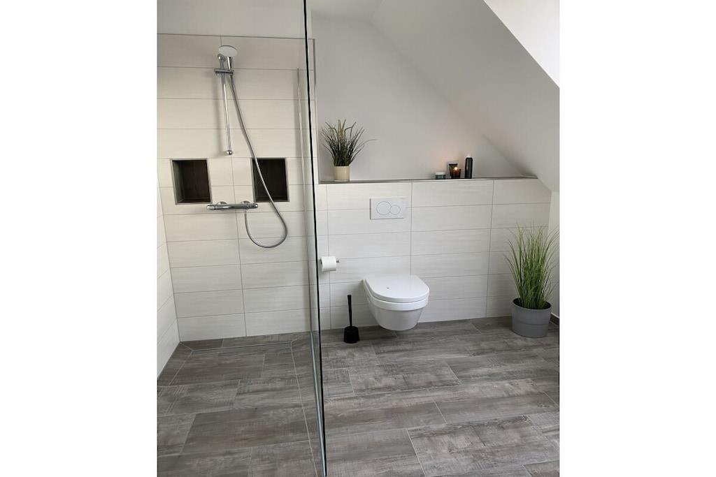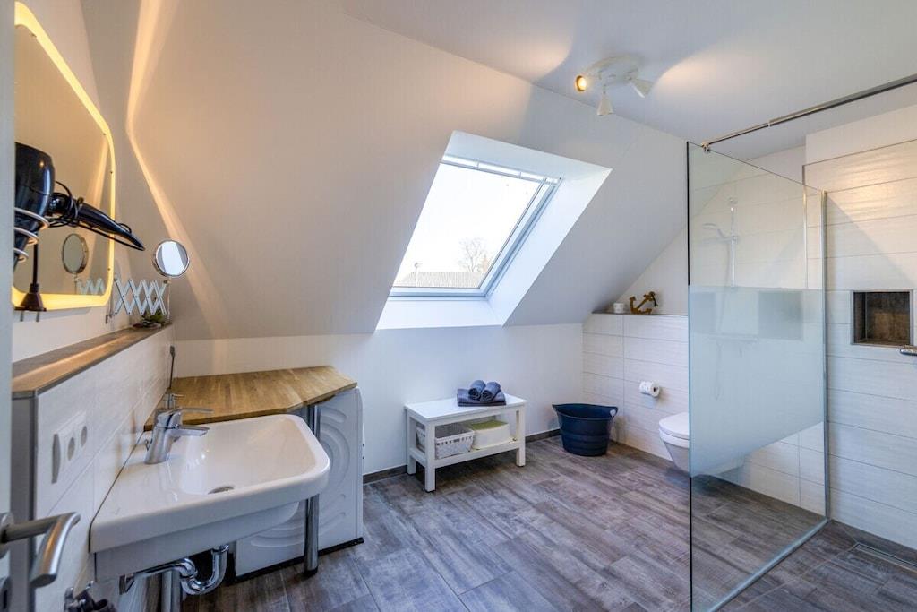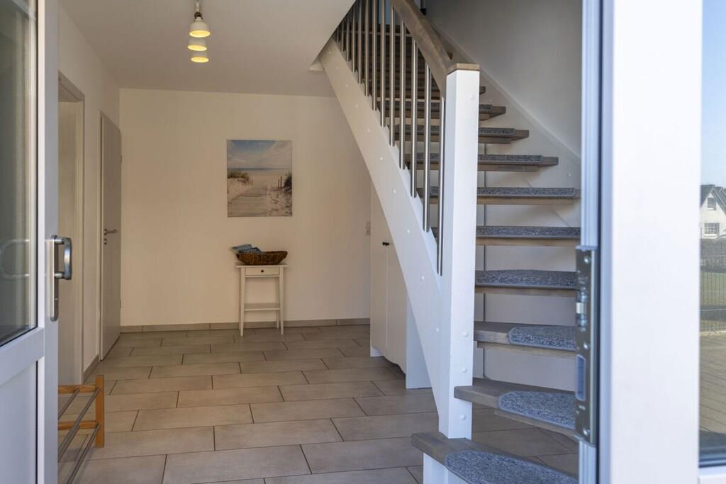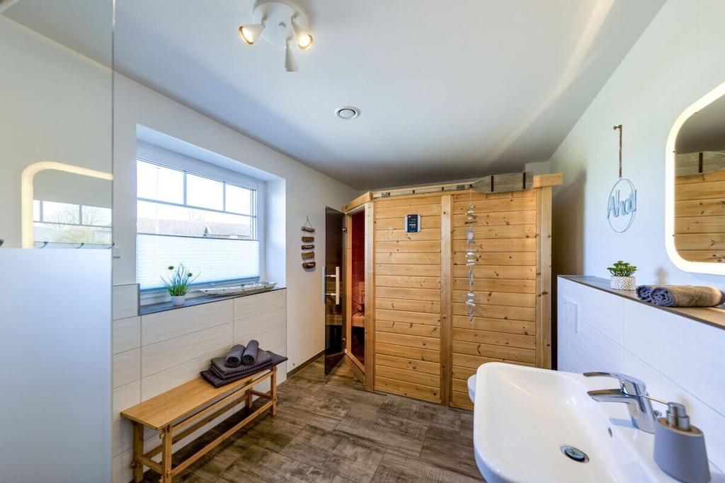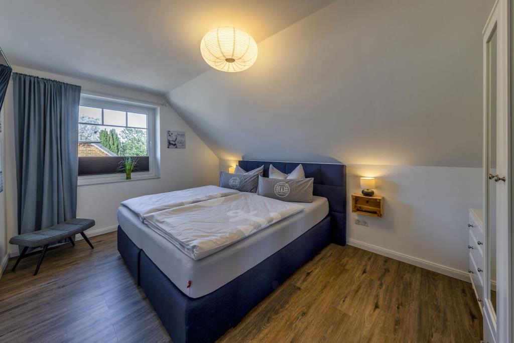Das Haus "Steuerbord" (seemännisch für "rechts") wurde im Jahr 2020 nach modernstem Standard gebaut. Über zwei Stockwerke auf ca. 101 qm Wohnfläche verteilen sich der Wohn-/Essbereich, drei Schlafzimmer und zwei Bäder. Die Einfahrt bietet Platz für zwei Fahrzeuge. Insgesamt finden sieben Personen Platz im Haus Steuerbord. Die mit Holz belegte Terrasse ist nach Süden ausgerichtet, so dass Du den Sonnenaufgang beim Frühstück und den Sonnenuntergang beim abendlichen Grillen verfolgen kannst. Beide Bäder sind mit einer bodentiefen Dusche ausgestattet und bieten viel Raum. In das Bad im Erdgeschoss ist eine Sauna eingebaut, diese hat Platz für zwei bis drei Personen. In dem Bad im Obergeschoss befindet sich zusätzlich eine Waschmaschine.