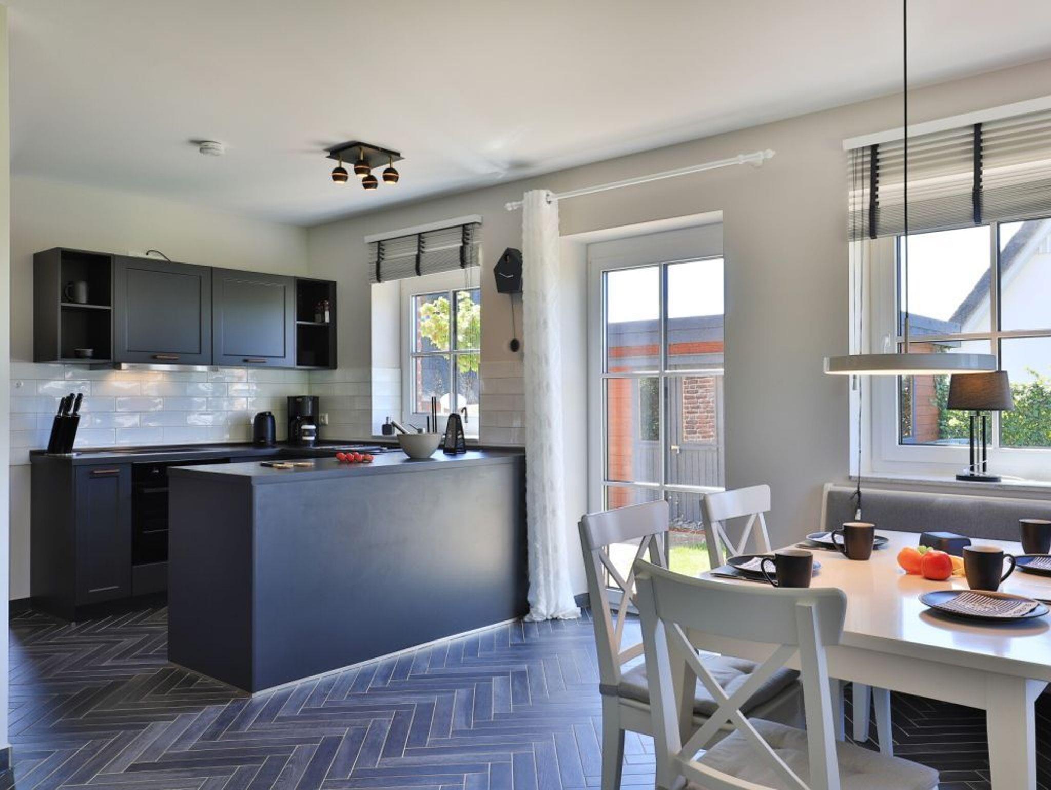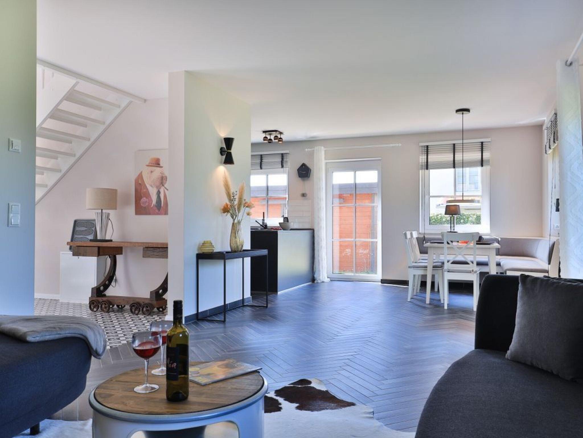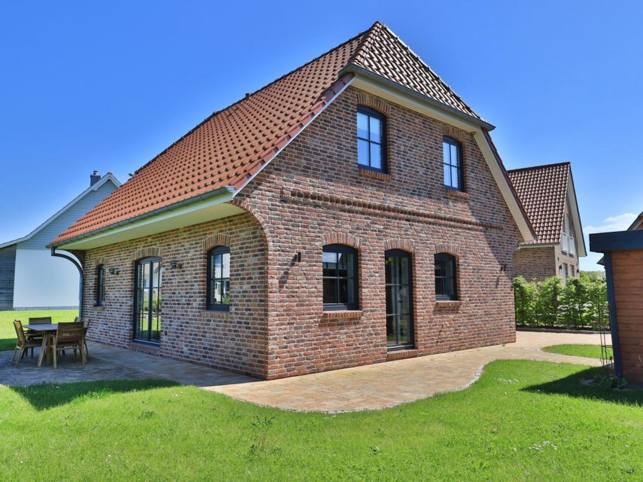 Modernes Ferienhaus mit 3 Schlafzimmern, Terrasse und Garten, nur 800 m vom Naturstrand entfernt, ideal für Familien und Haustierfreunde.