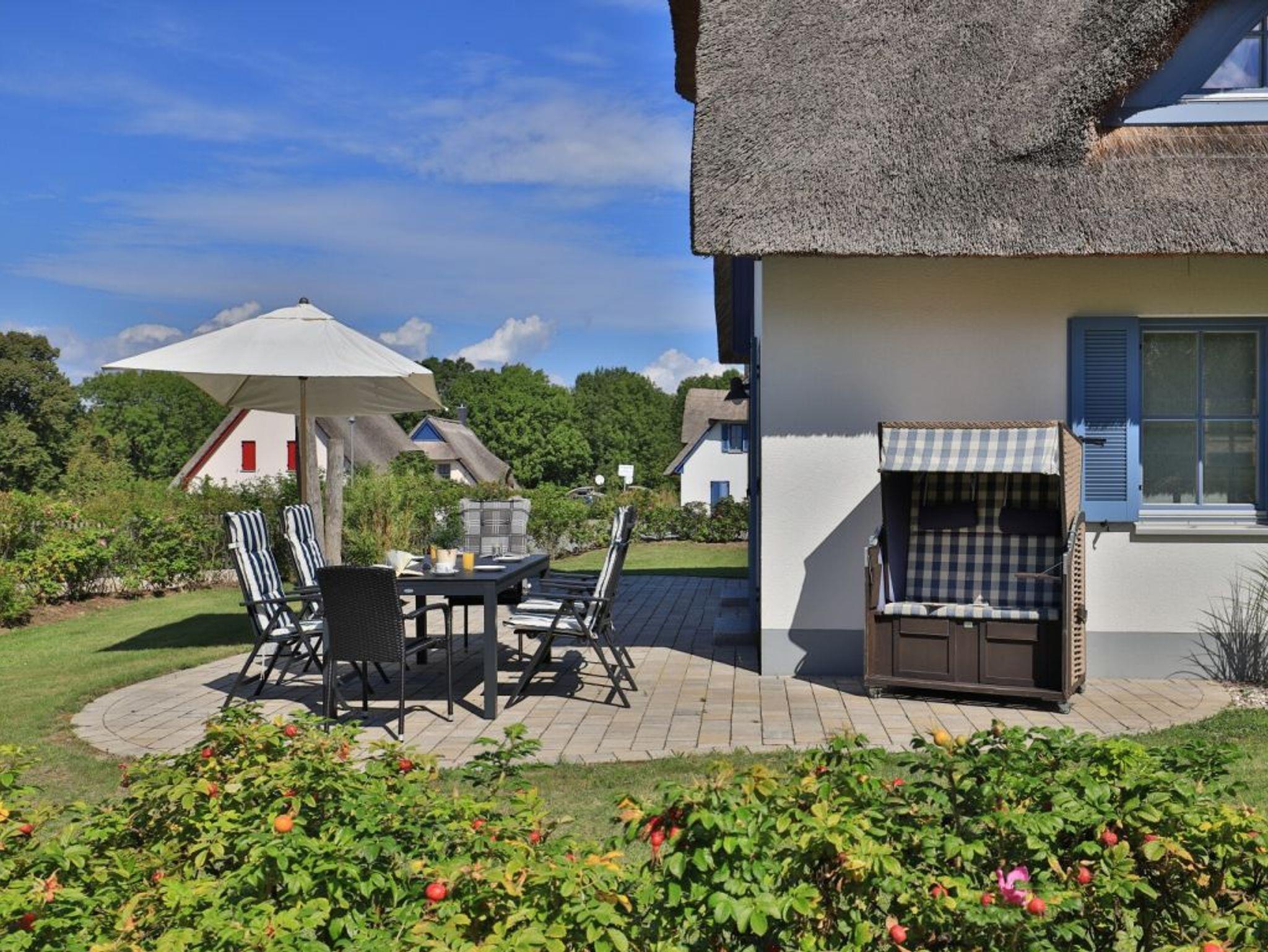 Exklusives Reetdachhaus Kranich nahe Schloss Groß Schwansee mit Sauna und 800 m zum Naturstrand an der Lübecker Bucht.