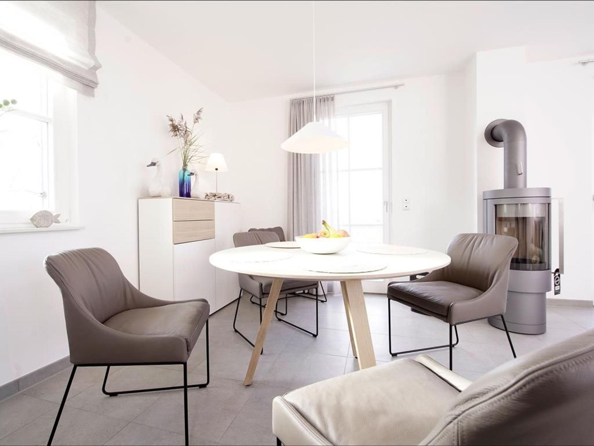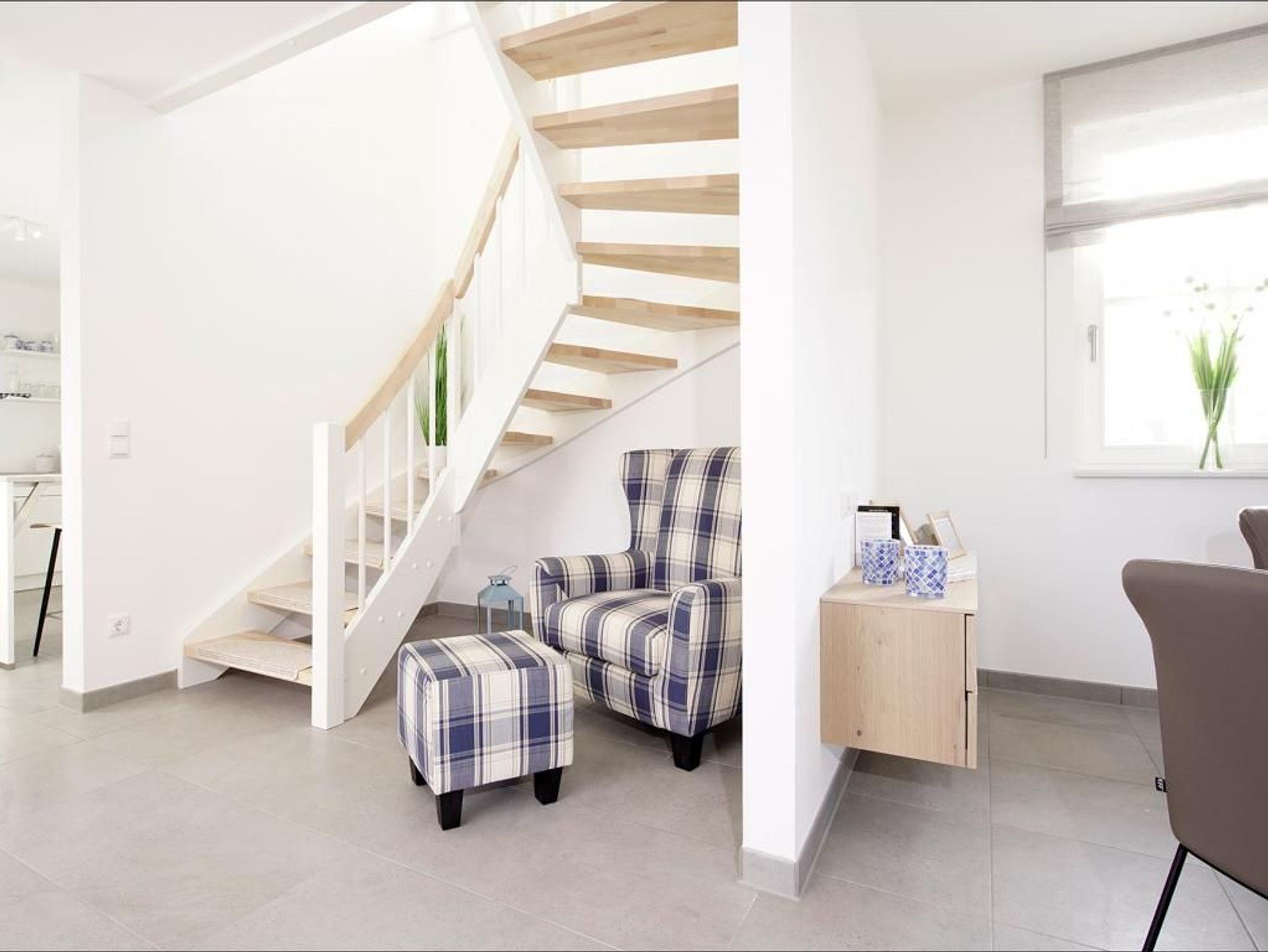 Das neu erbaute 4- Zimmer Feriendomizil mit Terrasse & Garten ist für bis zu 4 Personen bestens ausgestattet und besticht durch eine moderne Luxusausstattung mit Kaminofen und hauseigener Sauna. In dem lichtdurchfluteten Haus mit einer geräumigen Wohnfläche von 106qm, die sich in einen schicken Wohn-/Essbereich mit Komfortküche, 3 separate Schlafzimmer sowie einem sehr geräumigen Vollbad mit Badewanne und Duschkabine, Duschbad mit Sauna und einem zusätzlichen Gäste WC aufteilen, wird sich jeder Gast auf Anhieb wohlfühlen. Zur technischen Wohnraum-Ausstattung gehören Flachbild TV, kostenfreier WLAN Zugang und eine Musikanlage. Die in den Wohnraum integriert Küche mit kleinem Tresen und zwei Sitzhockern, ist bis ins Detail durchdacht und nahezu perfekt ausgestattet mit Geschirrspüler, Ceranfeldherd mit Backofen, Dunstabzugshaube, Mikrowelle, Kaffeemaschine, Toaster, Wasserkocher usw. Ein großer Esstisch mit 4 bequemen Sitzgelegenheiten und Blick auf den Kaminofen lädt zum gemeinsamen Speisen ein. Über eine schöne Holztreppe gelangen Sie in das Obergeschoss mit seinen 3 Schlafzimmern 1x Doppelbett, 2x jeweils mit einem Einzelbett. Ebenso ist im Obergeschoss das hochwertige Vollbad untergebracht. Ihren PKW parken Sie kostenfrei auf dem Grundstück. Eine Kaution i.H.v. 200,00? ist zu zahlen.