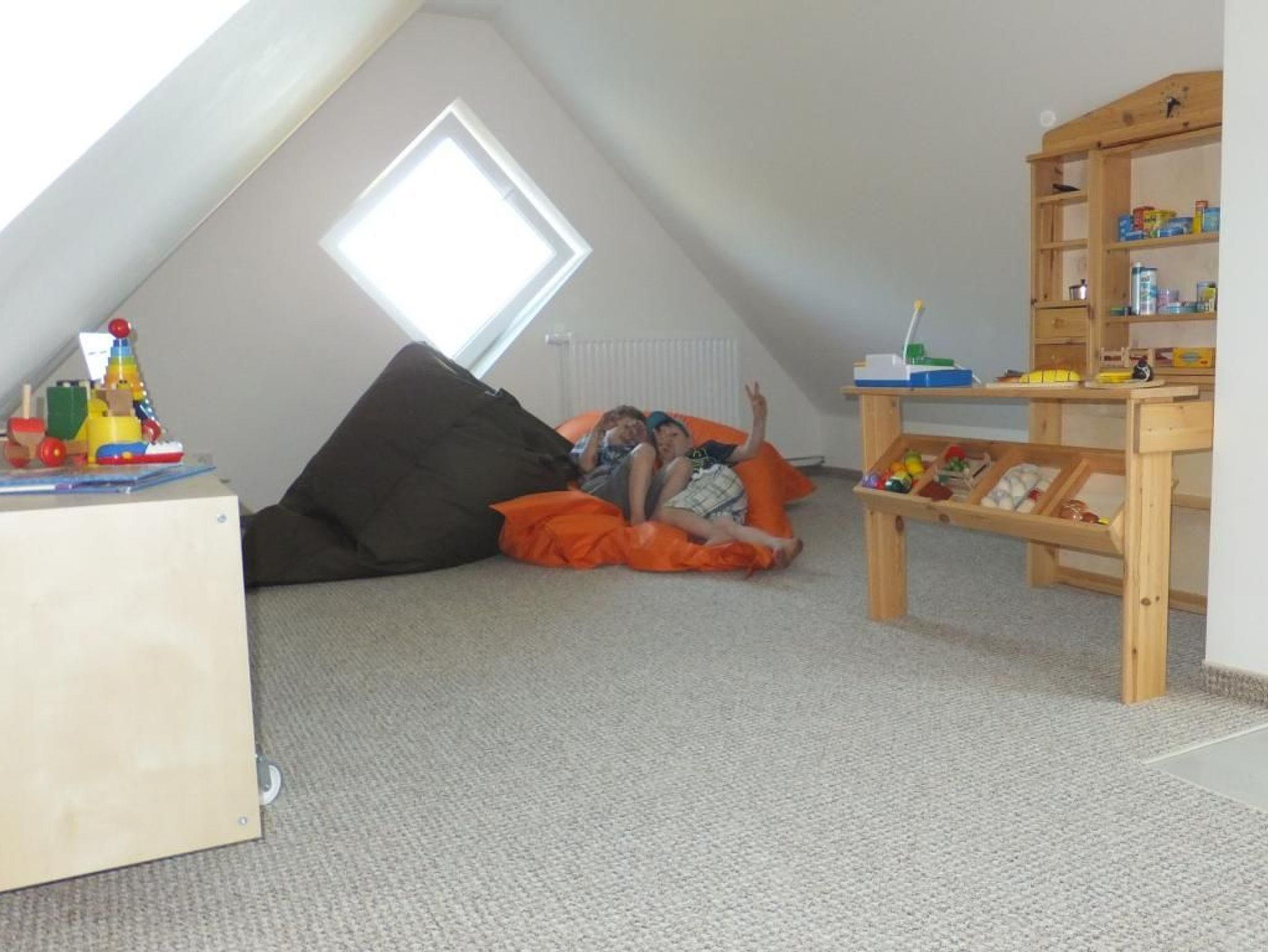 Drei Schlafzimmer sind im Obergeschoss des Hauses davon 1x mit Doppelbett, Ankleidezimmer, Fernseher und Zugang zur Dachterrasse, sowie 2 weitere Schlafzimmer mit jeweils 2 Einzelbetten, die zum Doppelbetten ausziehbar sind. Auch das Komfort-Wellnessbad mit Saunakabine und ebenfalls Dachterrassenzugang befindet sich auf der oberen Ebene. Im Spitzboden ? Treppenschutzgitter- des Ferienobjektes ist ein Kinderspielzimmer eingerichtet. Der Hauswirtschaftsraum bietet eine Waschmaschine sowie Kühl-/Gefrierkombination. Für kleine Kinder stehen Kinderhochstuhl, Kindergitterbett und Bollerwagen kostenfrei bereit. Ein PKW-Stellplatz befindet sich am Haus. Bei Anreise wird eine Kaution i.H.v. 200,00 Euro erhoben. Es handelt sich um ein Nichtraucherhaus indem Haustiere nicht gestattet sind. Groß-Schwansee ist ein kleiner Küstenort in direkter Lage zum Ostseefernradweg, der entlang der Ostsee bis nach Priwall-Travemünde, Lübeck wie auch zum Ostseebad Boltenhagen führt.