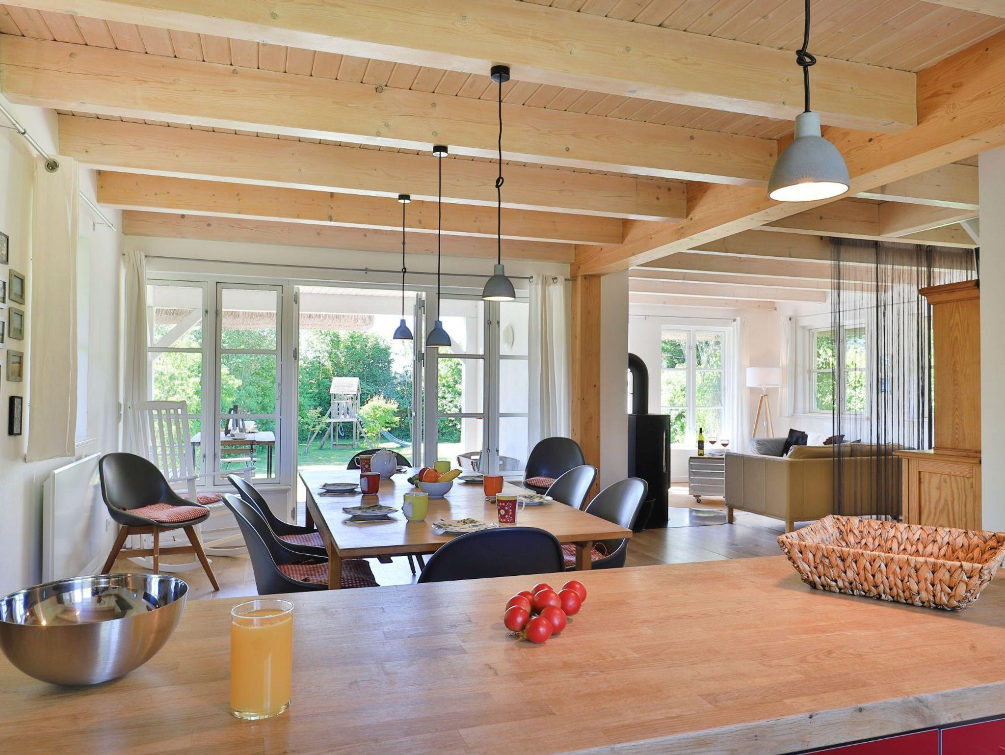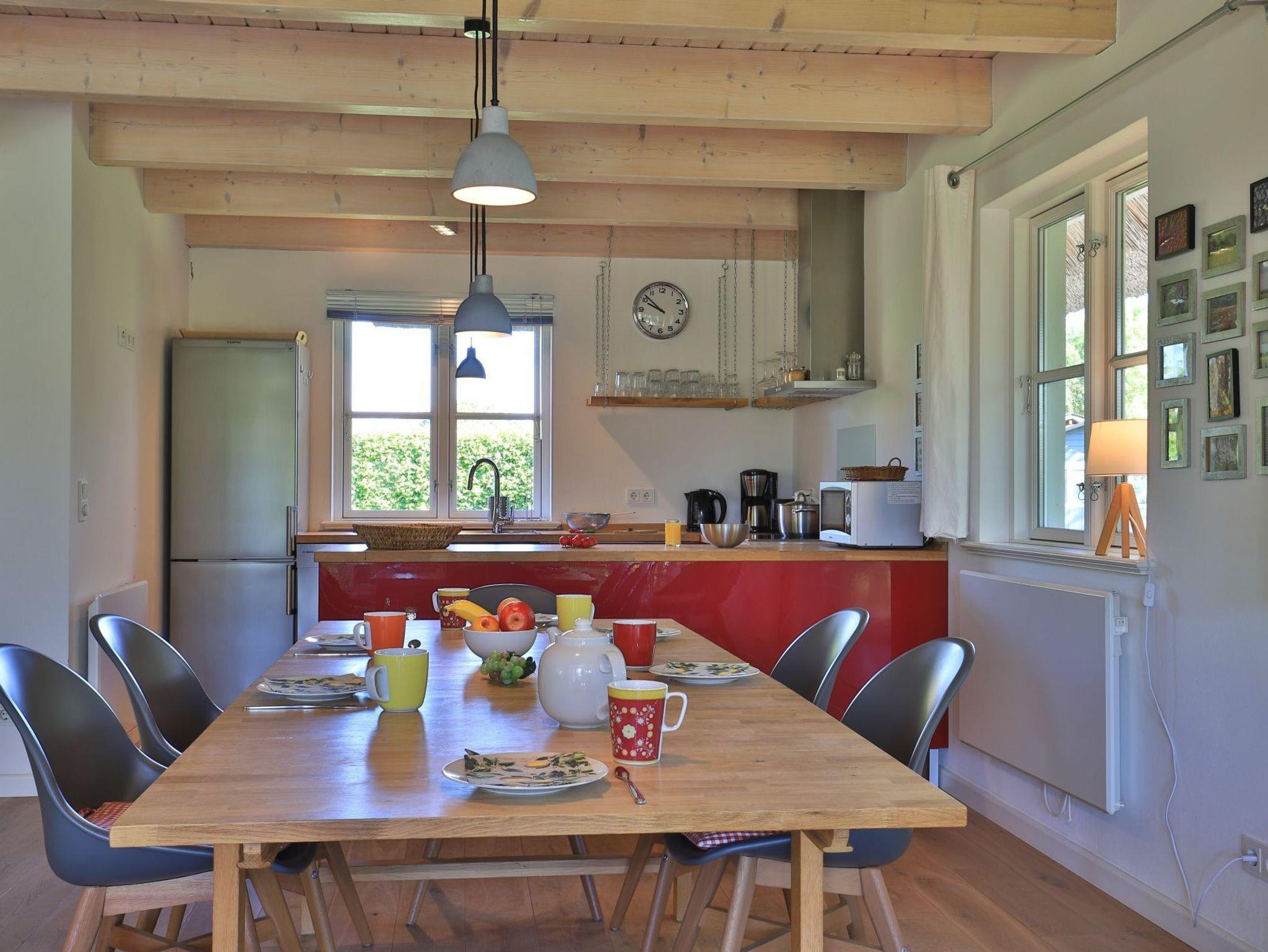 Sehr komfortabel und nur 500 Meter zum Strand ist dieses Feriendomizil vor allem für Familien bestens geeignet. Der großzügige Garten erfreut Kinderherzen mit Rutsche und Klettergerüst. Auch an Bollerwagen, Spielsachen, Kinderreisebett und Kinderhochstuhl wurde gedacht. Urlaub umgeben von Natur und Meer. Auf 113 m² Wohnfläche unterteilt sich das Haus in einen schicken Wohnbereich ? Fernseher und DVD Player- Kaminofen mit Kinderschutzabsperrung, bequemen Sitzmöbeln sowie einen Essbereich mit großem Esstisch für 6 Personen, an den die integrierte sehr gut ausgestattete Küchenzeile mit Geschirrspüler, Ceranfeldherd, Backofen, Kühlschrank & Gefrierschrank grenzt. Nach Herzenslust können Sie hier leckere Mahlzeiten zubereiten. Auch ein modernes Duschbad und ein Hauswirtschaftsraum mit Waschmaschine befinden sich im Erdgeschossbereich. Vom Wohnzimmer aus gelangen Sie auf die schöne Terrasse, wo Sie herrlich Entspannen können. Über eine Holztreppe erreichen Sie das Obergeschoss mit drei separaten Schlafzimmern 1x Doppelbett 1,60m x 2,00m ? 1x Doppelbett 1,40m x 2,00m- zwei Einzelbetten 0,90m x 2,00m- sowie dem großzügigen Vollbad mit Badewanne, Dusche und zwei Waschtischen. Bei diesem Angebot handelt es sich um ein Haus für Nichtraucher ohne Haustiere. Für Ihren PKW steht ein kostenfreier Stellplatz direkt am Haus bereit.