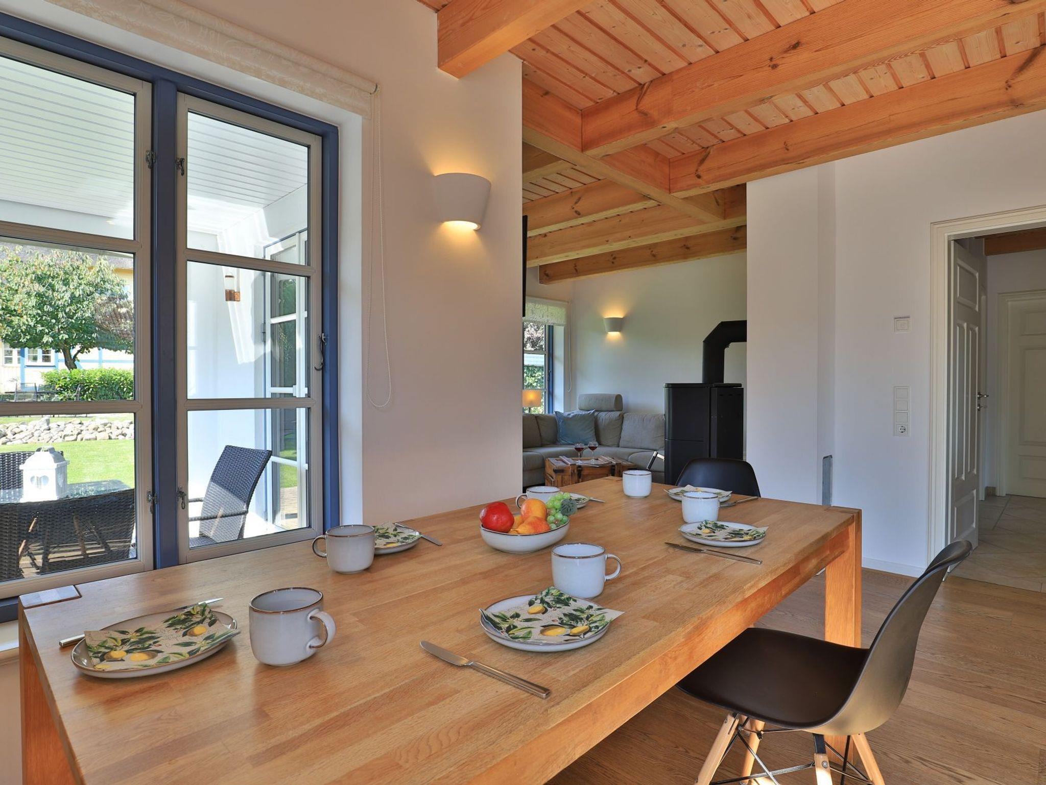 Im mecklenburgischen Küstenort Groß Schwansee, nur etwa 800 Meter vom Naturstrand entfernt, befindet sich das 5-Zimmer-Ferienhaus. Mit einer Wohnfläche von 132qm bietet es Platz für bis zu 9 Personen und überzeugt durch eine erstklassige Ausstattung, darunter ein Kaminofen, eine Fass-Sauna sowie eine Terrasse mit Gartennutzung und Grillmöglichkeiten. Die durchdachte Raumaufteilung umfasst 4 separate Schlafzimmer und 2 Bäder, während die voll ausgestattete Wohnküchenzeile und die komfortable Möblierung für ein angenehmes Urlaubsgefühl sorgen. Waschmaschine und Wäschetrockner sind ebenfalls vorhanden. Familienfreundliche Extras wie Kinderhochstuhl, Kinderreisebett und Bollerwagen runden das Angebot ab. Kostenfreies WLAN und zwei Fernseher sorgen für zusätzlichen Komfort. Auf dem Grundstück stehen zwei PKW-Außenstellplätze zur Verfügung. Das Einzelhaus liegt nahe dem Ostseeradwanderweg, der durch malerische Wiesen und Felder führt. Haustiere sind nicht gestattet, und das Haus ist Nichtraucherbereich. In der Nähe finden Sie das Schlossgut Groß Schwansee mit einem wunderschönen Natur-Schlossgarten sowie einem Restaurant und Café mit Außenterrasse.