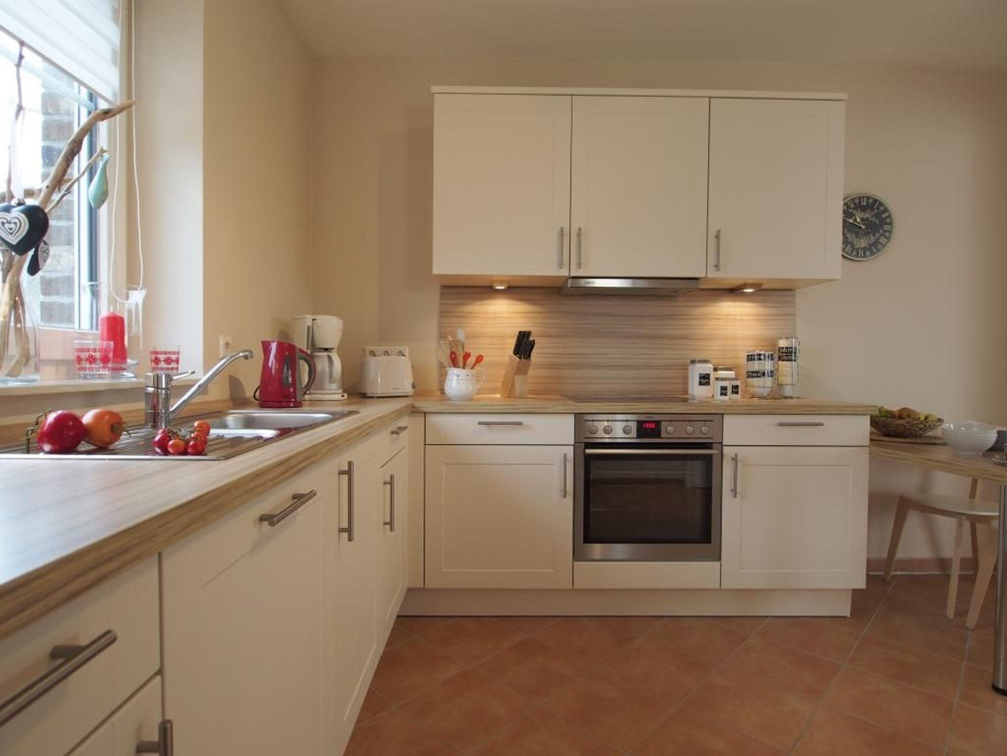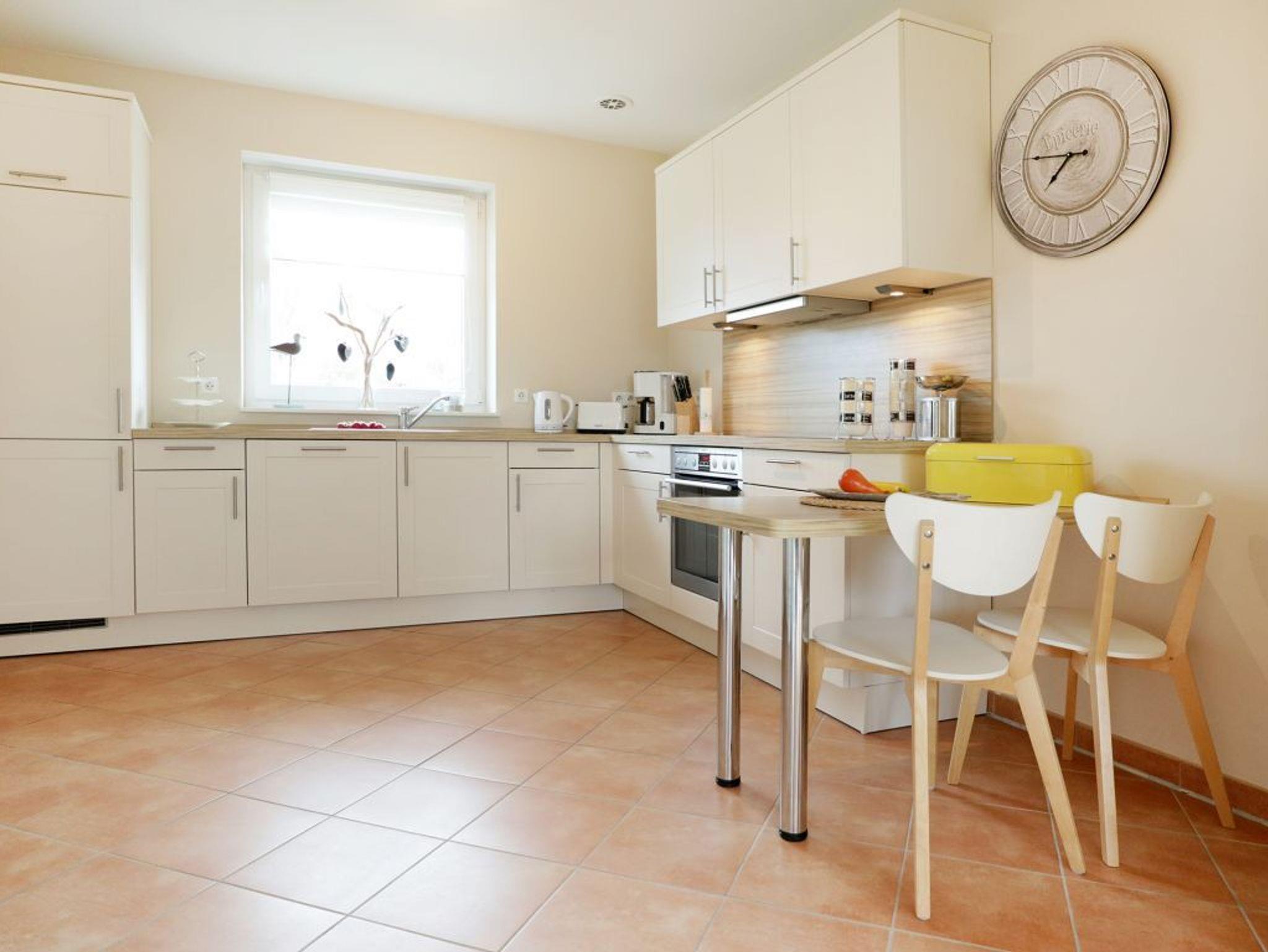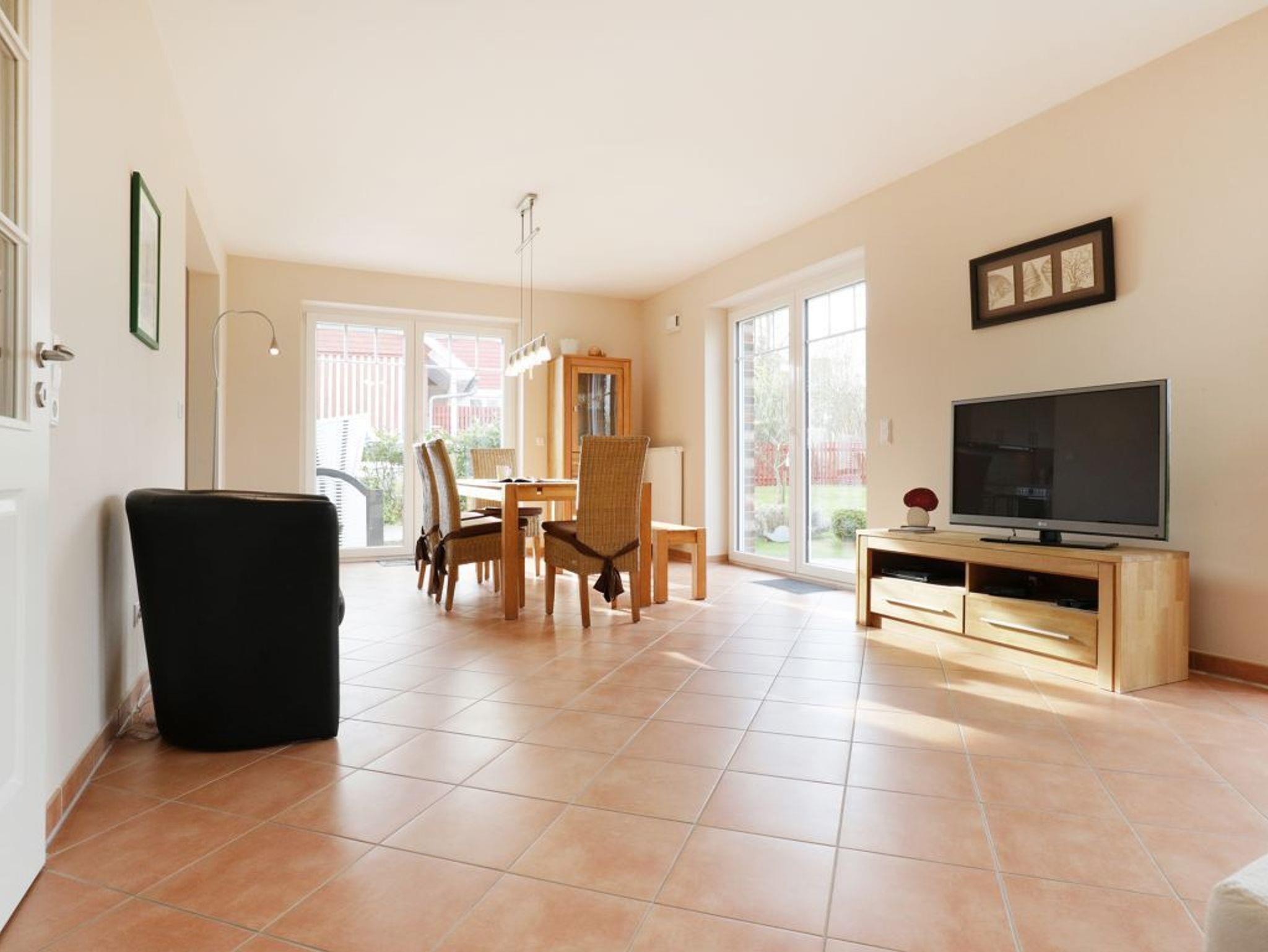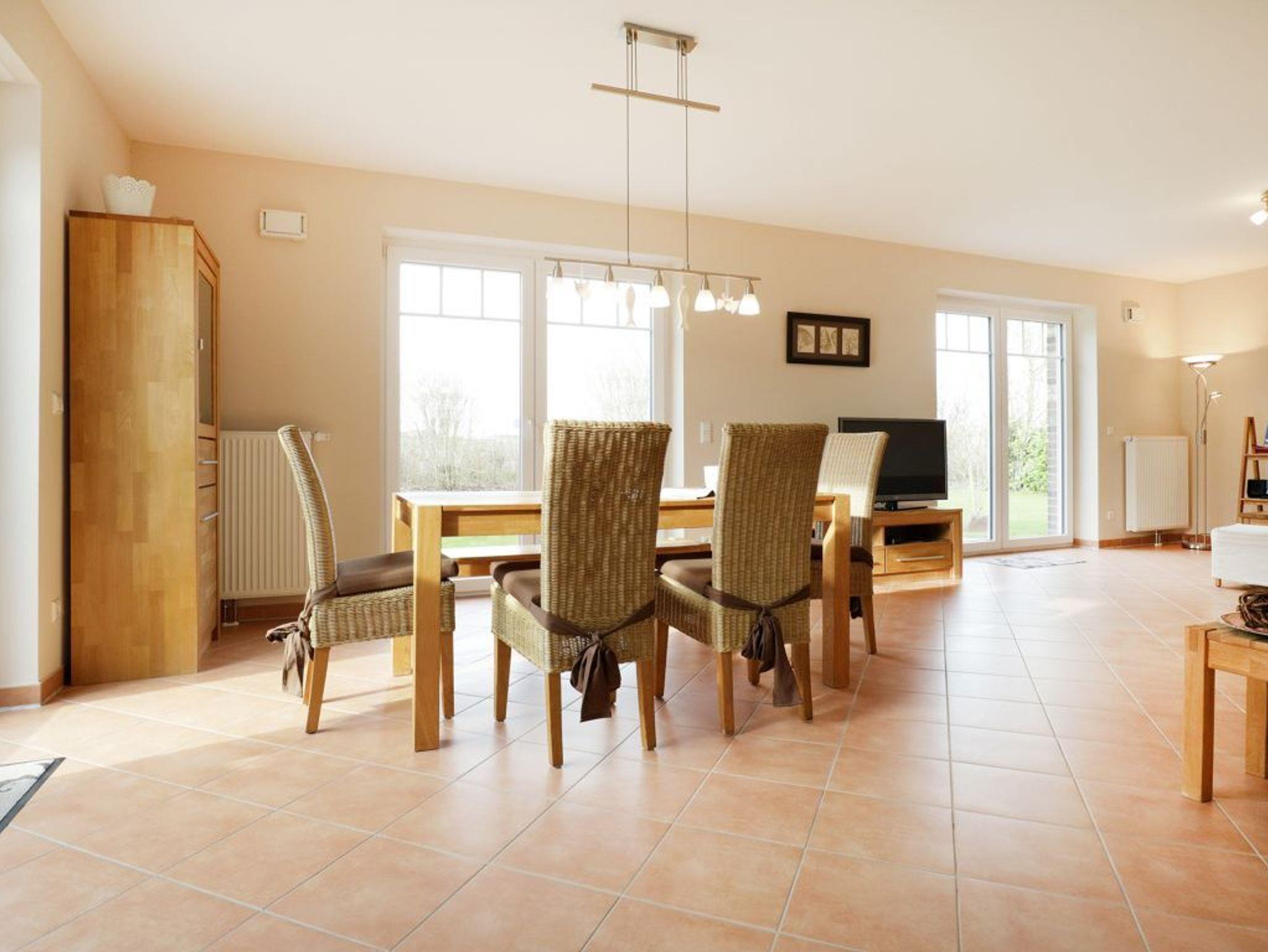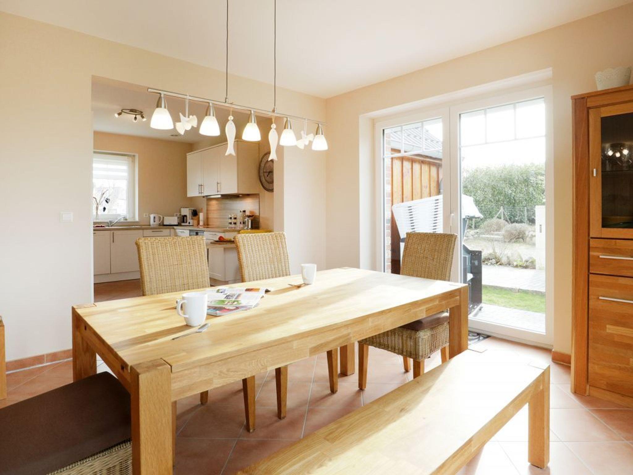 Das stilvoll eingerichtete Ferienhaus bietet mit seinen 110m² genügend Platz zum Erholen für bis zu 6 Personen. Durch die großen Fenster erwarten Sie lichtdurchflutete, helle Räume. Das Wohn-/Esszimmer lässt keine Wünsche offen. Es ist eingerichtet mit einer gemütlichen Sitzecke, einem Fernseher und einem DVD-Player. Die integrierte Einbauküche ist hochwertig mit Geschirrspüler, Herd (Ceranfeld), Backofen, Toaster, Kaffeemaschine u.v.m. Im Hauswirtschaftsraum stehen Ihnen eine Waschmaschine und ein Wäschetrockner zur