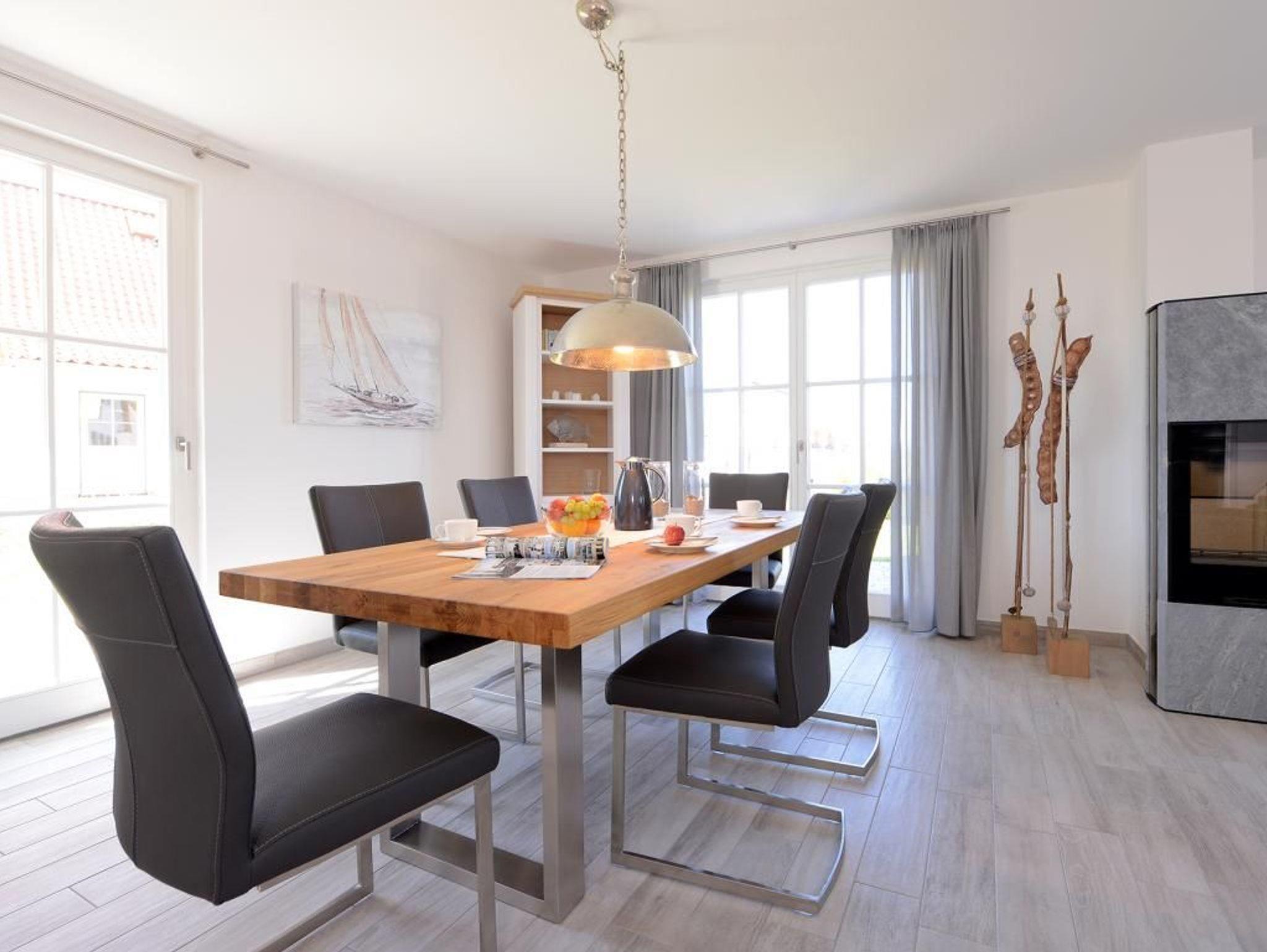 Die ?Strandbank? ist ein traumhaftes Reetdachhaus, in dem 6 Personen einen unvergesslichen Urlaub verbringen können. Das Haus erstreckt sich über 2 Ebenen und bietet mit seinen 156 m² Wohnfläche genügend Platz. Sie werden von einem stilvoll eingerichteten Wohn- / Esszimmer mit Kaminofen und TV-Gerät empfangen. Von dort aus haben Sie Zugang zu den 2 Terrassen. Die separate exklusive Küche ist komplett mit Mikrowelle, Geschirrspüler, Induktionskochfeld, Backofen, Kühlschrank mit Gefrierfach, Wasser- / und Eierkocher, Kaffeemaschine, Waffeleisen, Toaster und diversen Kleingeräten ausgestattet. Das Haus verfügt über ein Duschbad, ein Vollbad mit Badewanne und Dusche, ein Gäste WC und eine Sauna für 6 Personen in einer hochwertigen Ausführung. Im Obergeschoss befinden sich 3 Schlafzimmer mit jeweils einem Doppelbett. Das gesamte Haus ist gefliest und mit einer Fußbodenheizung ausgestattet. Auch kostenfreies WLAN steht Ihnen während Ihres Aufenthaltes zur Verfügung. Für die kleinen Gäste stehen ein Kinderhochstuhl, ein Kinderbett sowie ein Bollerwagen bereit. Ein PKW-Stellplatz befindet sich direkt am Haus.
