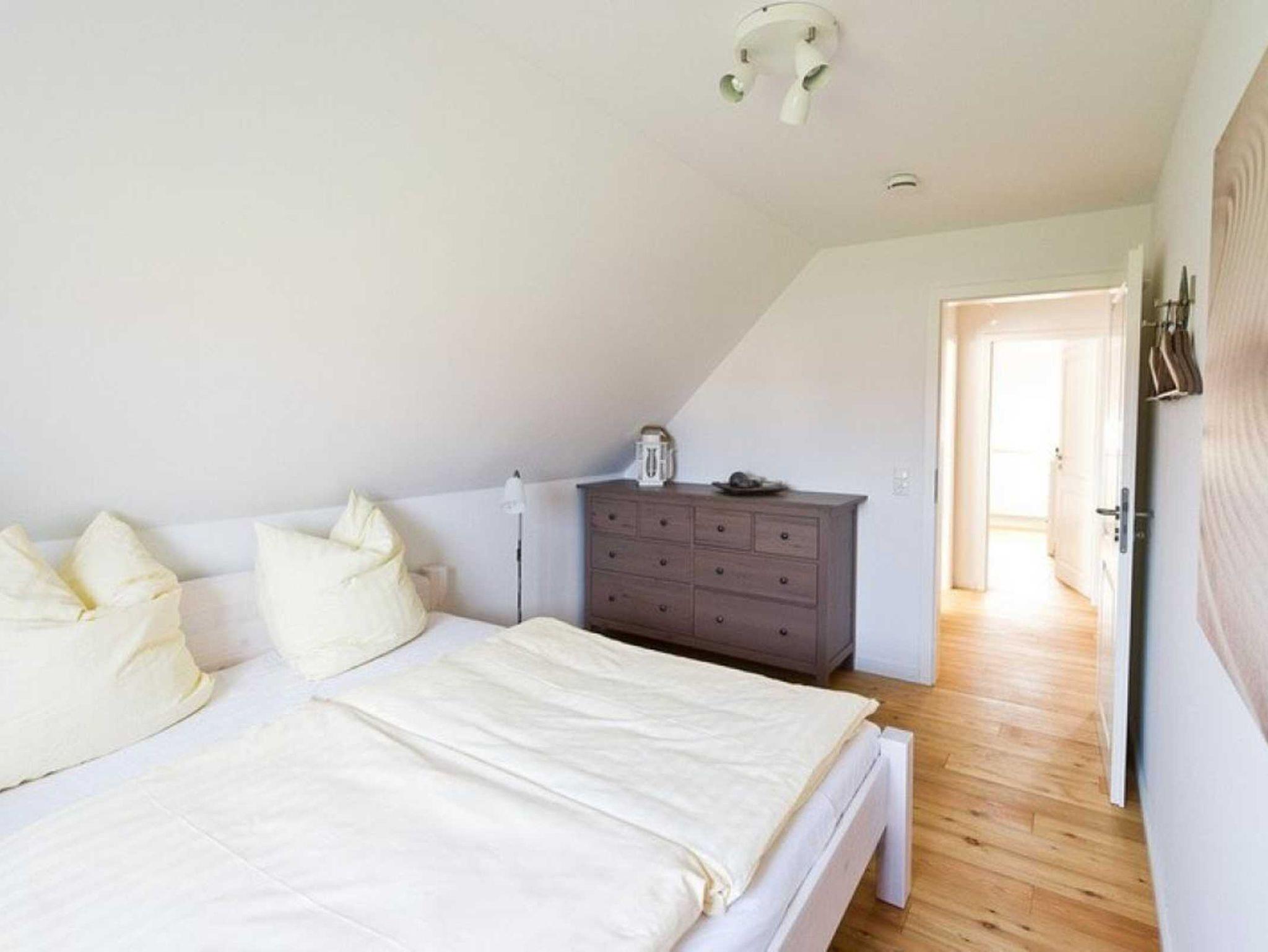 Unter ökologischer Bauweise wurde das Ferienhaus ?Ruhe Insel? mit natürlichen Materialien errichtet. Nachhaltig, energiesparend wirken sich auch die Solar Module des Daches aus. Das großzügige Urlaubsdomizil mit einer Wohnfläche von 120qm und vier separaten Schlafzimmern ist nahezu perfekt für befreundete Familien oder Eltern-Kind-Großeltern Urlaub. Sobald Sie das Haus mit dem schick eingerichteten und geräumigen Wohn-/Essraum betreten beginnt die Erholung. Die bequeme Sofalandschaft ist ebenso einladend, wie die integrierte Küche mit großem Esstisch für bis zu 6 Personen. Gemütliche Abende verbringen die Urlauber während der Sommermonate auf der großen Terrasse, vor dem Kaminofen im Wohnbereich, oder dem großen Smart- TV (50 Zoll) mit DVD- Player. Auch eine Musikanlage sorgt für Unterhaltung. Die integrierte Küche ist bestens ausgestattet mit Geschirrspüler, Ceranfeldherd, Backofen, Mikrowelle sowie ausreichend Geschirr und Besteck. Das Traumhaus eignet sich auch für längere Aufenthalte, da hier kostenfreies WLAN, Waschmaschine, Wäschetrockner, Bügeleisen und Bügelbrett selbstverständlich sind. Im Erdgeschoss befindet sich ein Wellness-Duschbad, indem eine Ecksauna für drei Personen vorhanden ist. 4 separate Schlafzimmer sind im Obergeschoss und jedes lässt sich über Verdunkelungsrollos abdunkeln und ist zudem mit Insektenschutz ausgestattet. Eines der Schlafzimmer ist mit 2 Einzelbetten ausgestattet, zwei weitere mit jeweils einem Einzelbett. Das vierte Schlafzimmer bietet ein Doppelbett. Zudem ist ein Vollbad im oberen Geschoss vorhanden. Beide Bäder mit Fußbodenheizung.