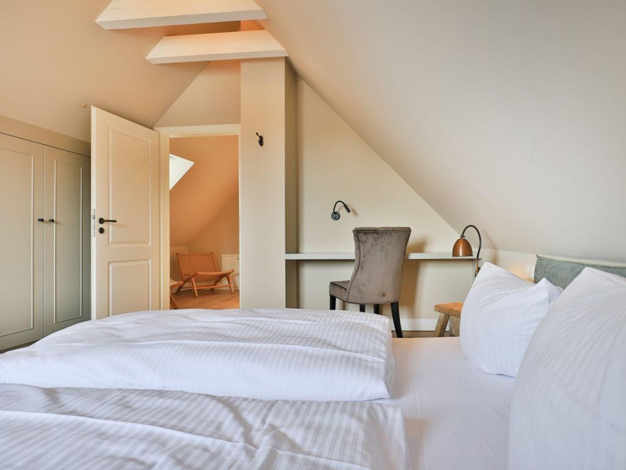 Auch von diesem Schlafzimmer gelangen Sie auf die Terrasse. Zudem befindet sich auf dieser Wohnebene ein modernes Tageslicht Duschbad. Über den Wohnungsflur erreichen Sie über eine leicht geschwungene Treppe das Obergeschoss, wo sich zwei weitere Schlafzimmer einmal mit Doppelbett und das weitere Schlafzimmer mit zwei Einzelbetten und einer zusätzlichen Schlafgelegenheit befinden. Alle drei Schlafzimmer bieten Kleiderschränke mit viel Stauraum für Ihre Urlaubsgarderobe. Die obere Ebene besitzt zudem ein modernes Tageslicht Vollbad mit Badewanne, Dusche und guten Ablagemöglichkeiten für Ihre Kosmetikartikel. Der inklusive Service umfasst auch die Nutzung von Kinderhochstuhl und einem Kinderreisebett.