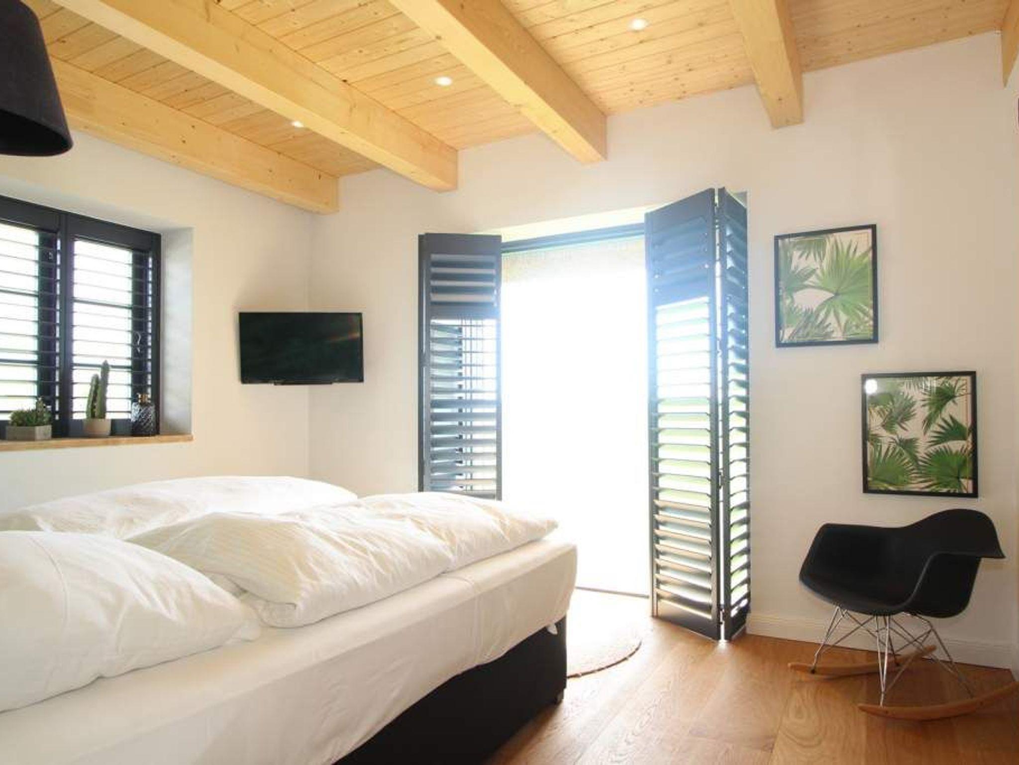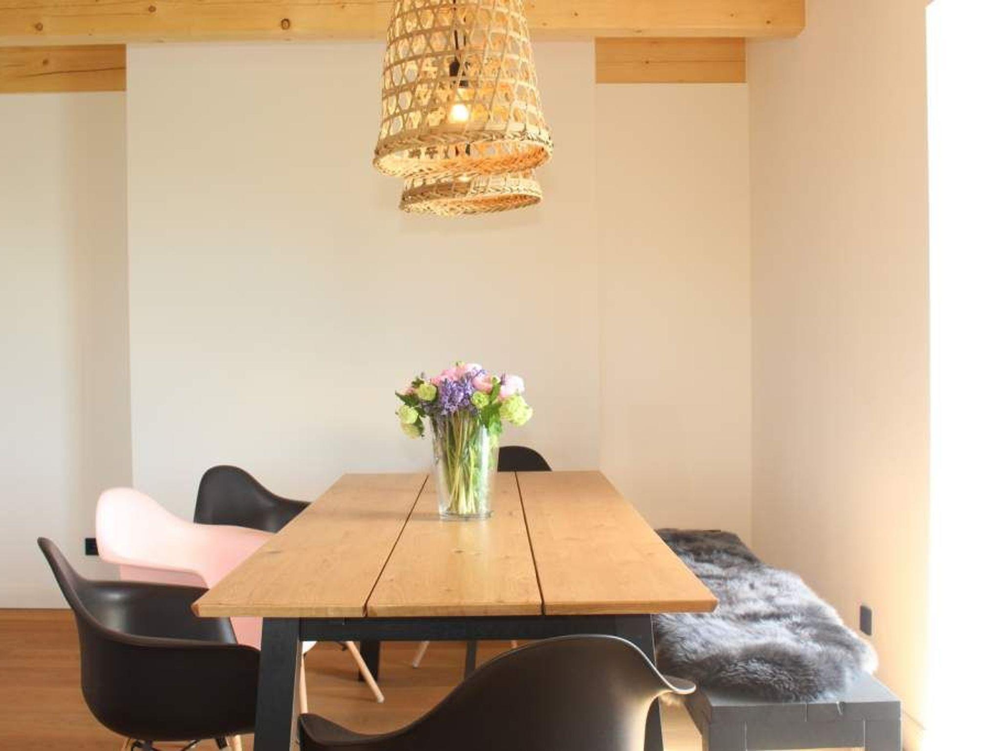 Die vielen und großen Fensterelemente sorgen für viel Licht und ein tolles Raumgefühl. Der Blick ins Grüne lässt Urlaubsfreude aufkommen. Zeitlose Klassiker mit modernem Twist erwarten Sie im gesamten Haus.