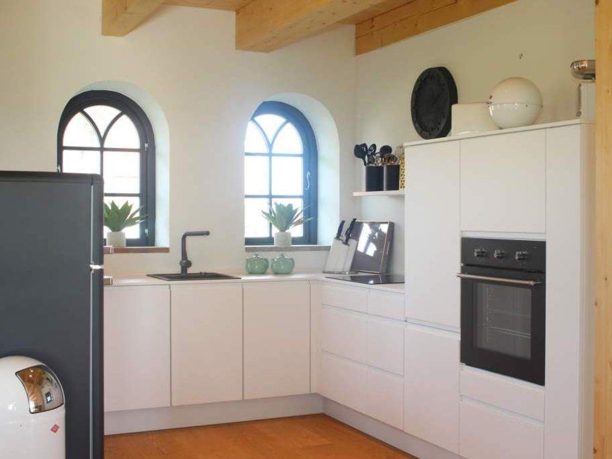 Ob die moderne Küchenzeile mit vielen Geräten (u.a. Geschirrspüler, Cerankochfeld, Mikrowelle usw.) oder der großzügige Esstisch mit passenden Stühlen, Sie werden sich pudelwohl fühlen. Auch eine Waschmaschine ist in der Küchenzeile zur kostenfreien Nutzung mit im Schrank integriert.