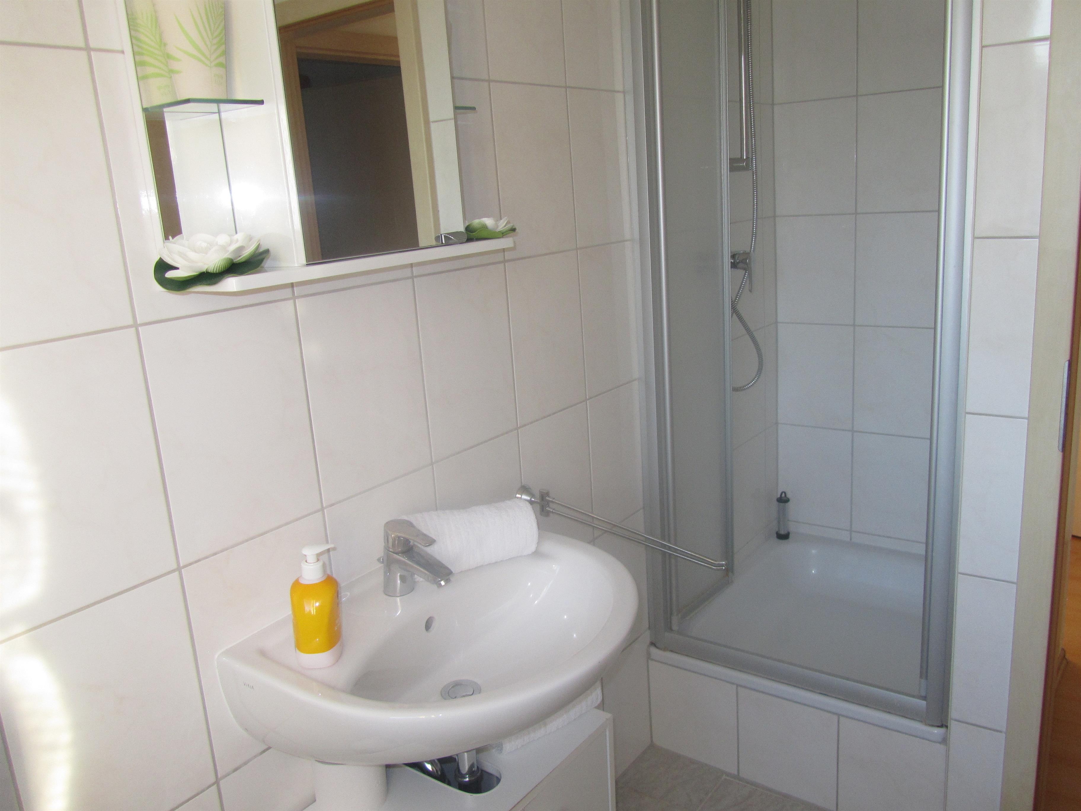 Unser Apartment hat ein schönes Bad mit Dusche, eine komplett ausgestattete Küche. Kaffeemaschine und