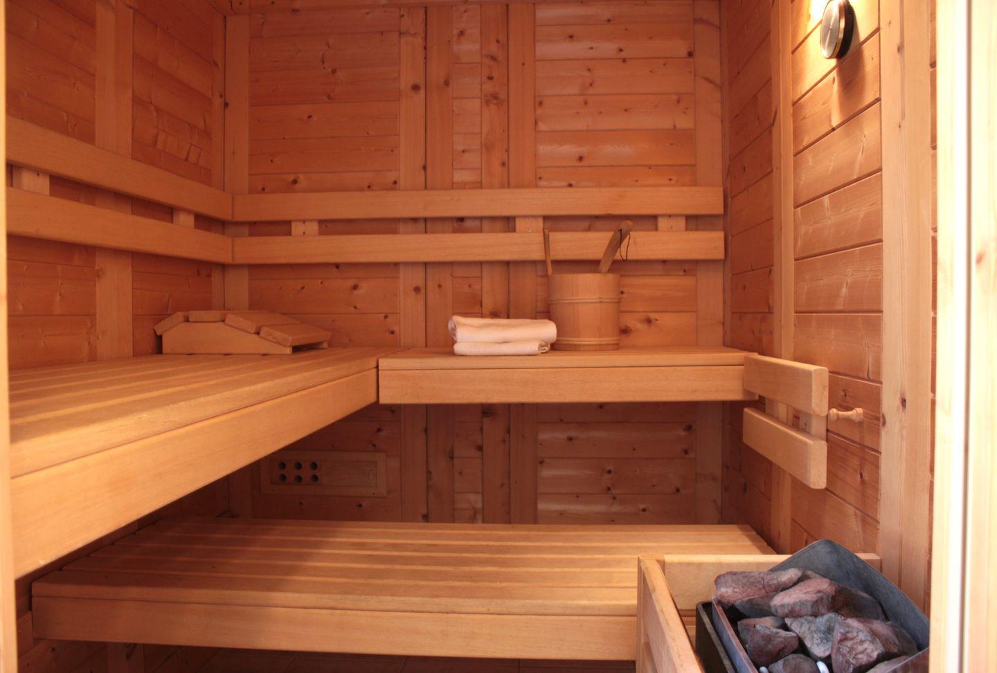 Die untere Etage des Hauses hält außerdem eine Sauna für bis zu 2 Personen und ein Gäste-WC für Sie bereit. In der kälteren Jahreszeit können Sie nach einem langen Spaziergang bei einem Saunagang Ihre Abwehrkräfte stärken und nach Belieben relaxen.
