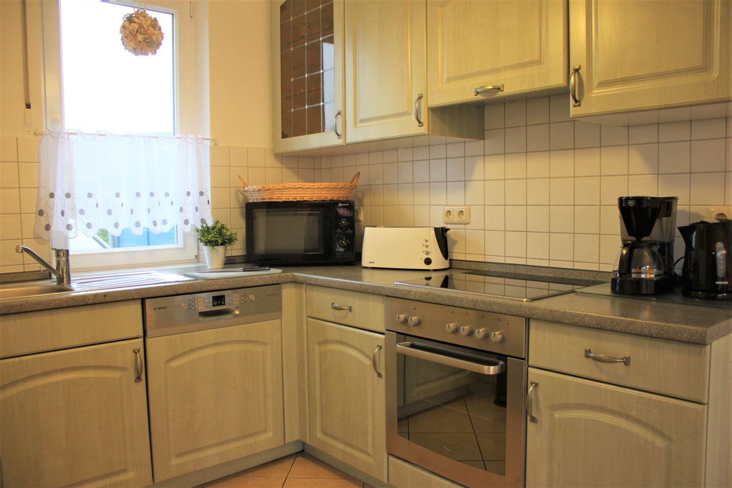 Die Küche verfügt über einen Herd mit Backofen, eine Mikrowelle, einen Geschirrspüler, einen Kühlschrank mit Gefrierfach und vieles mehr, sodass Sie bei Bedarf gute Möglichkeiten haben, sich selbst zu versorgen.