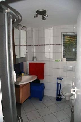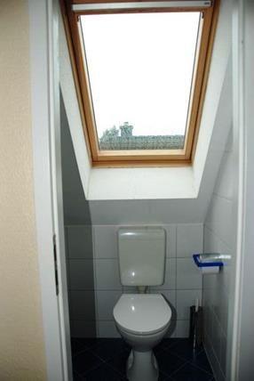 Weiterhin befindet sich ein Gäste-WC auf dieser Ebene. Das Hauptbadezimmer mit Tageslicht, Dusche, Waschtisch und WC steht Ihnen in der unteren Etage zur Verfügung.