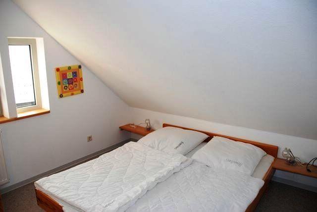 Des Weiteren befindet sich im Erdgeschoss eins der drei Schlafzimmer, welches mit einem Doppelbett ausgestattet ist.