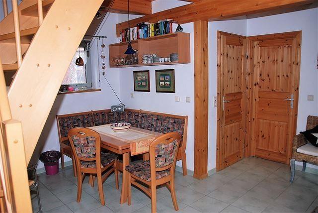 Der helle, kombiniert eingerichtete Wohn- und Essbereich verfügt über eine Sofaecke mit TV-Gerät, WLAN, Esstisch mit Stühlen und der integrierten Küche. Diese ist mit allen notwendigen technischen Geräten ausgestattet, die Sie bei Bedarf für eine Selbstversorgung benötigen. Dazu gehören bspw. Kühlschrank mit Gefrierfach, Geschirrspüler, Herd mit Backofen, Kaffeemaschine und vieles mehr.