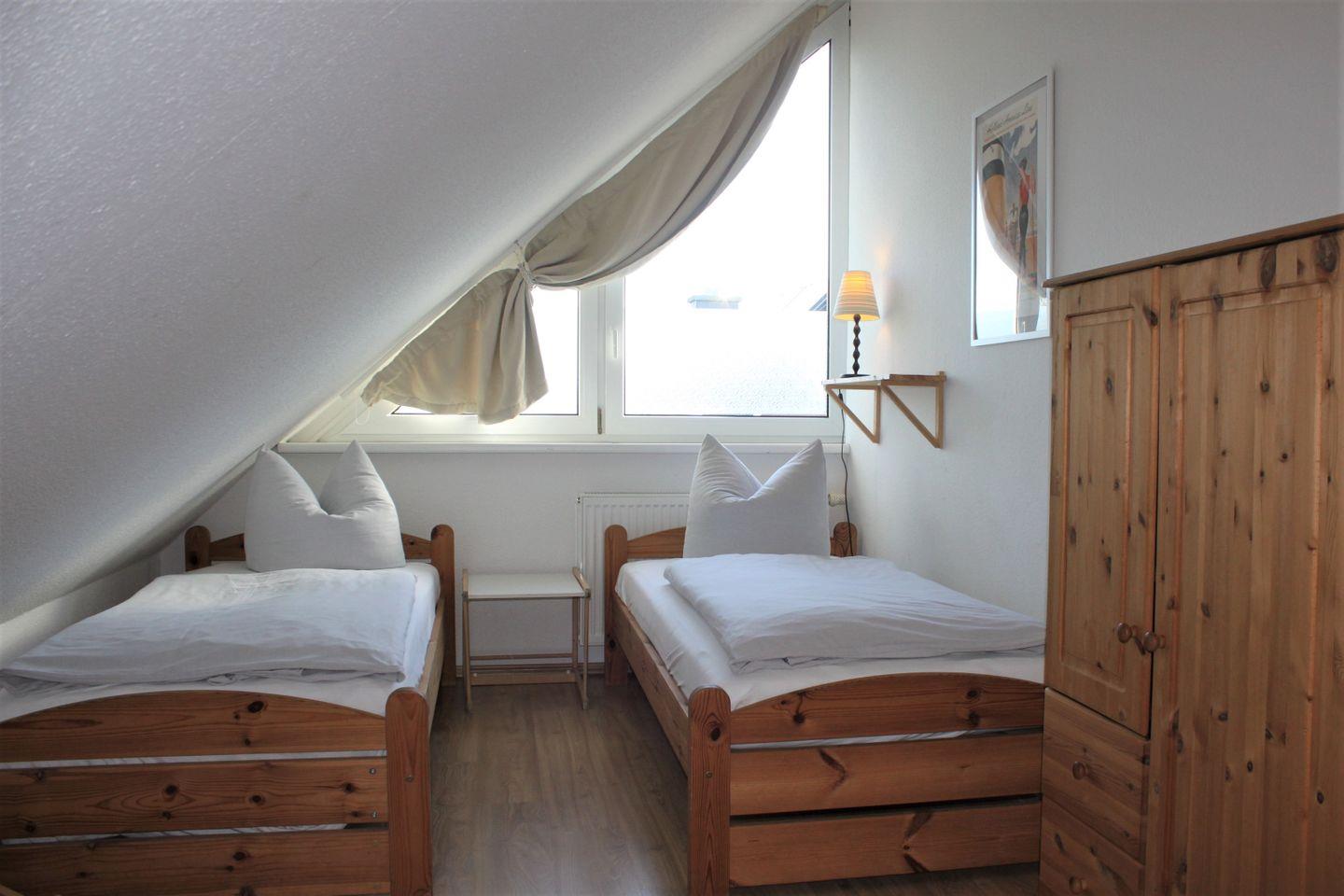 In der oberen Etage der Wohnung befinden sich die beiden zusätzlichen Schlafzimmer, die entweder mit einem Doppelbett oder zwei Einzelbetten und Ablagefläche für Ihre Garderobe ausgestattet sind.