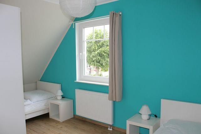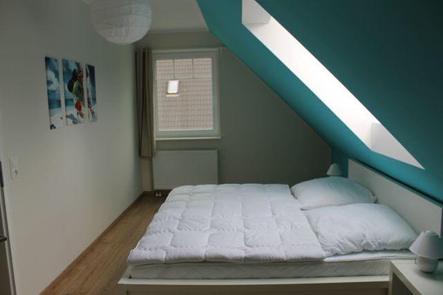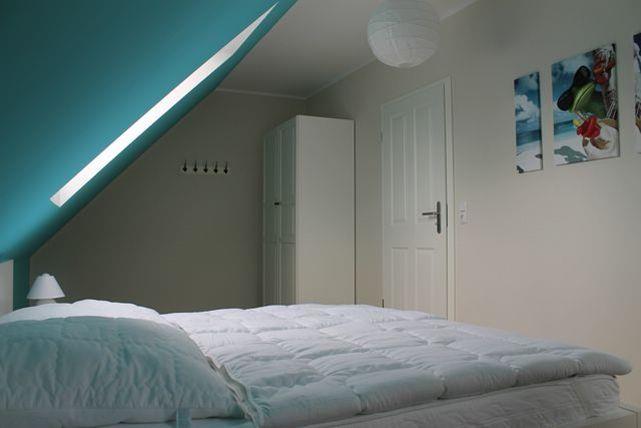 Über eine Treppe im Eingangsbereich gelangen Sie in die obere Etage des Hauses. Hier befinden sich die drei separaten modernen Schlafzimmer, die entweder mit einem Doppelbett, zwei Einzelbetten oder einem Etagenbett und jeweils genügend Stauraum für Ihre Garderobe möbliert sind.
