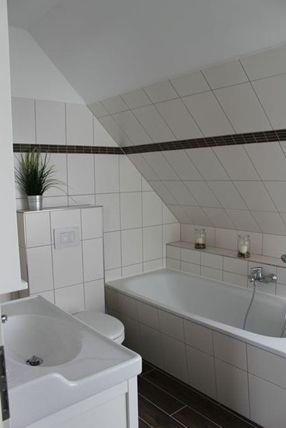 Außerdem steht Ihnen hier ein weiteres großzügiges Badezimmer mit Fenster, Dusche, Badewanne, Waschtisch und WC zur Verfügung.