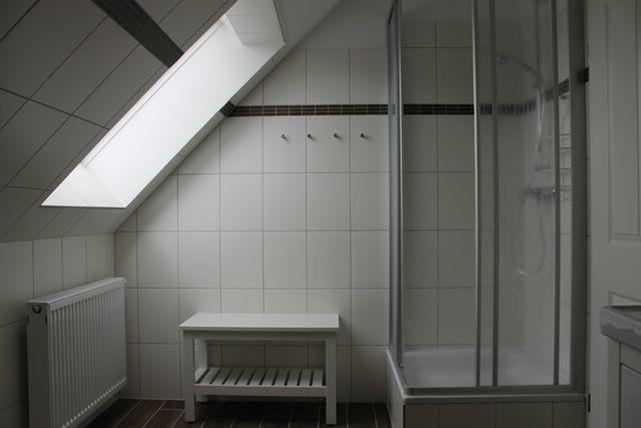 Im Erdgeschoss befindet sich zudem ein Badezimmer mit ebenerdiger Dusche, Waschtisch und WC.