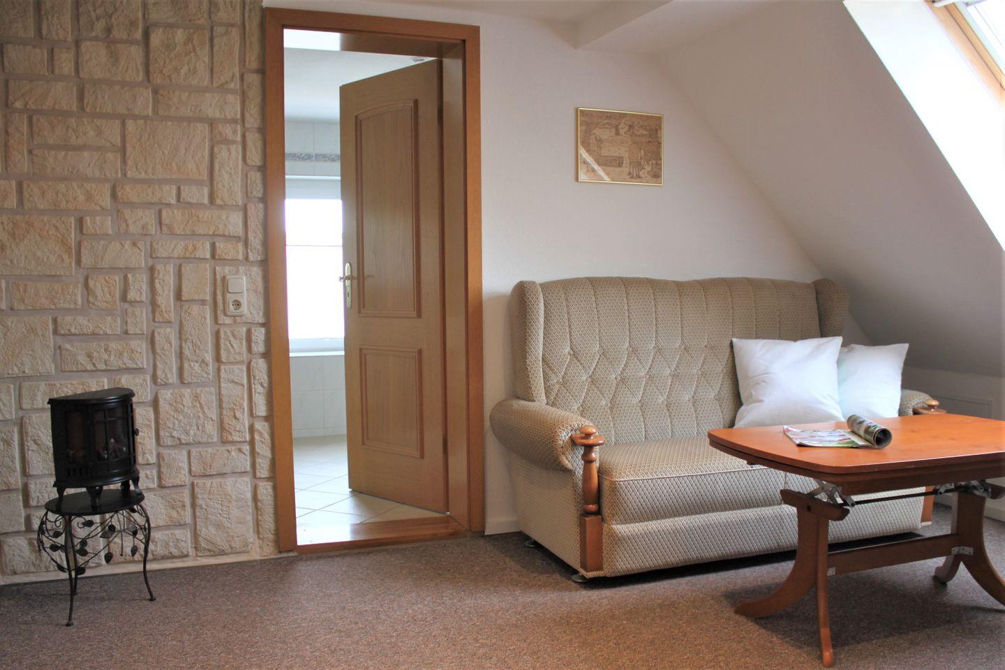 Diese ca. 70qm große, helle Maisonette-Ferienwohnung befindet sich in einem Einfamilienhaus und ist über eine Außentreppe erreichbar. Die Wohnung ist charmant und gemütlich eingerichtet und bietet Ihnen neben einem Wohnzimmer mit Couch, TV-Gerät und WLAN, eine großzügige Wohnküche mit Esstisch und vielen technischen Geräten. Dazu gehören zum Beispiel ein Kühlschrank, eine Mikrowelle, Herd mit Backofen, Kaffeemaschine, Wasserkocher, Toaster und einiges mehr.