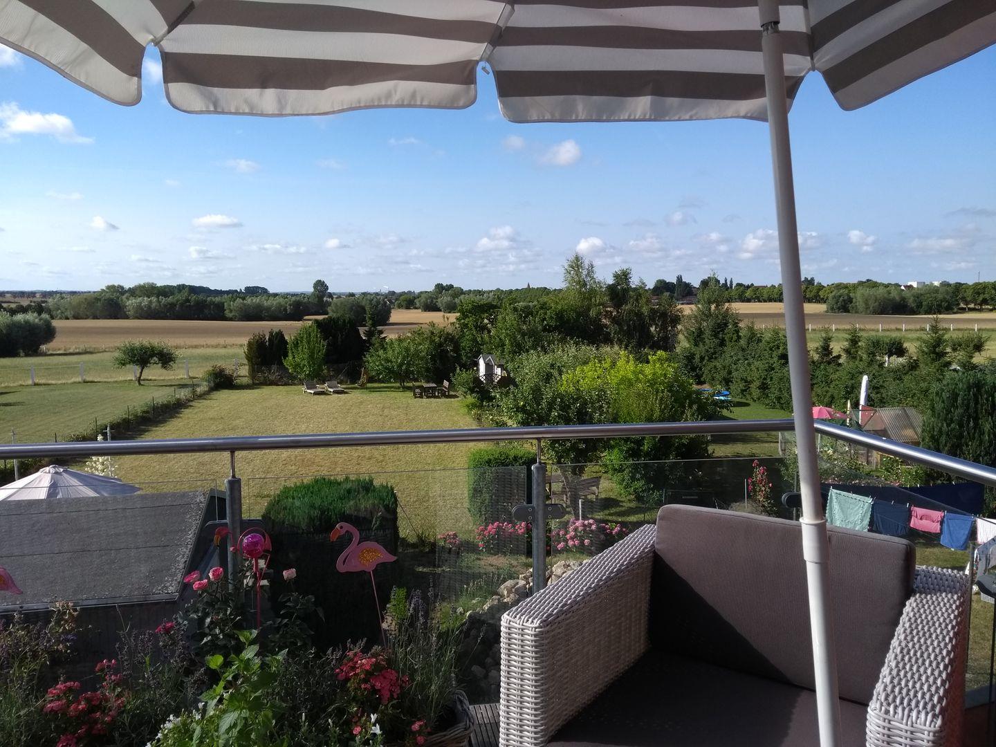 Die Ferienwohnung Inselglück auf Poel bietet modernen Komfort, Balkon mit Landschaftsblick und Nähe zum Sandstrand.