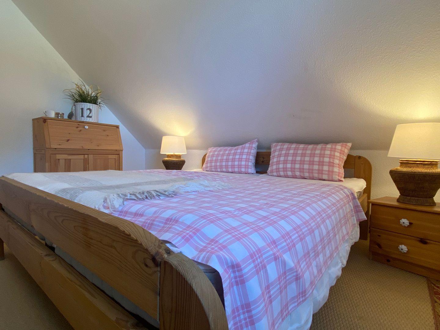 Das Haus erstreckt sich über zwei Etagen und verfügt über drei separate Schlafzimmer, die genügend Privatsphäre für alle Gäste bieten. Zwei der Schlafzimmer sind mit komfortablen Doppelbetten ausgestattet, die für erholsame Nächte sorgen. Das dritte Schlafzimmer bietet ein Ausziehbett, ideal für Kinder oder Freunde. Alle Zimmer sind liebevoll gestaltet und laden zum Wohlfühlen ein.