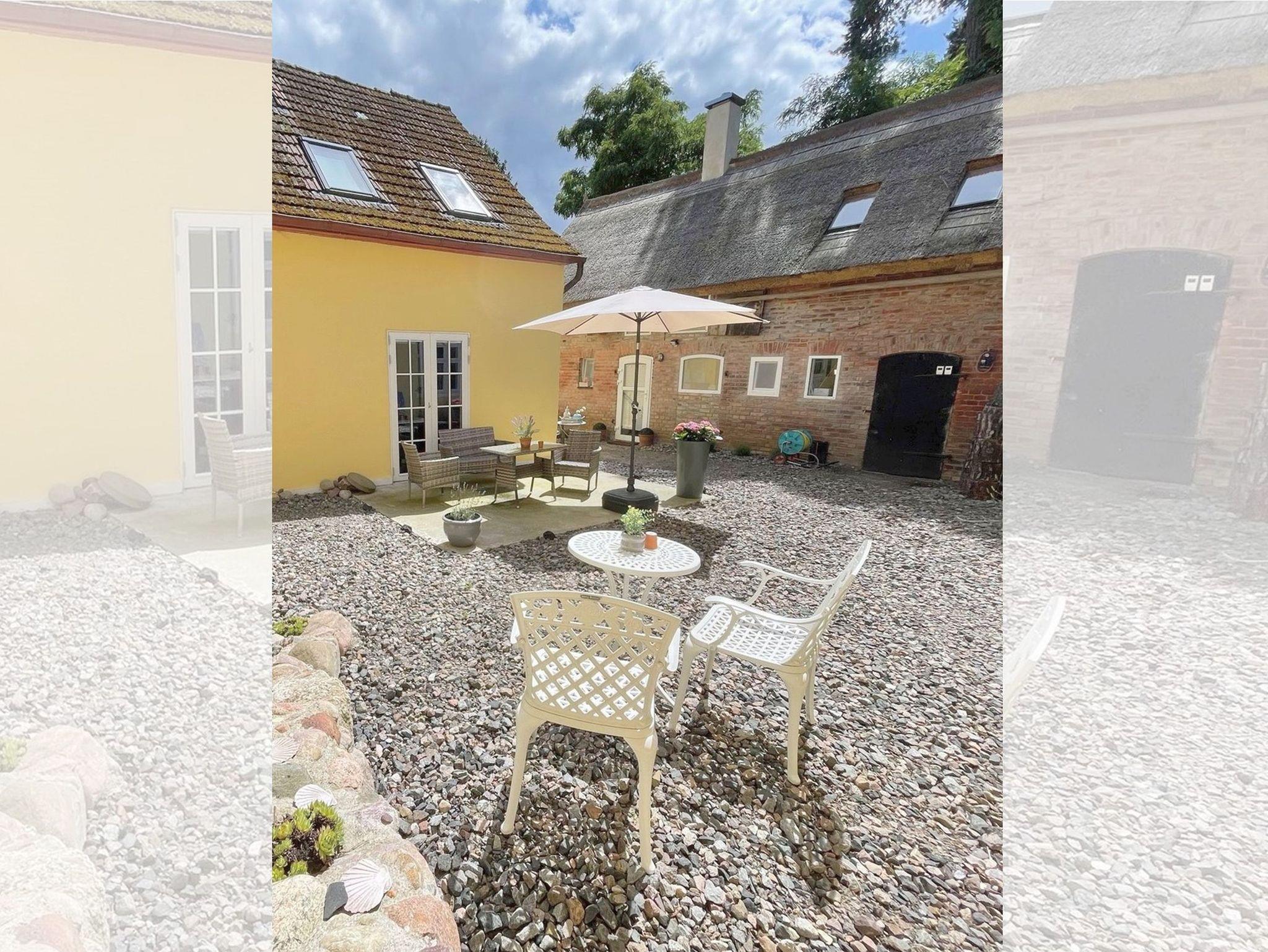 Der modern sanierte Vierkanthof befindet sich im idyllischen Fischerdorf Kamminke am Haff und umfasst drei charmante Ferienhäuser: Ellas Gehöft, Antons Remise und Vincents Scheune. Der Innenhof kann von allen Gästen genutzt werden (Nutzung auf eigene Gefahr, kein Winterdienst), und es steht für jedes Haus ein Parkplatz zur Verfügung.