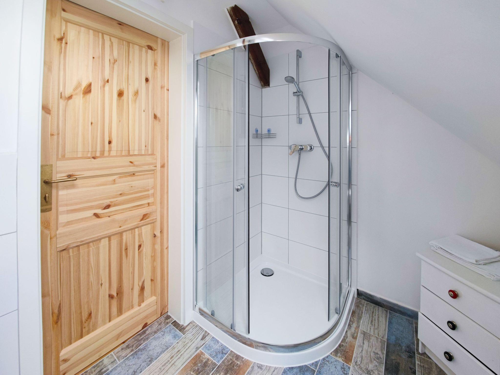 Die nächsten Einkaufsmöglichkeiten in Swinemünde (Netto, Biedronka) sind in nur 20 Minuten mit dem Fahrrad oder Auto erreichbar. Der Kamminker Strand ist in 10 Minuten zu Fuß erreichbar und lädt zu erholsamen Spaziergängen ein. Das ruhige Fischerdorf selbst bietet zahlreiche Möglichkeiten für Wanderungen am Wasser und im Wald.