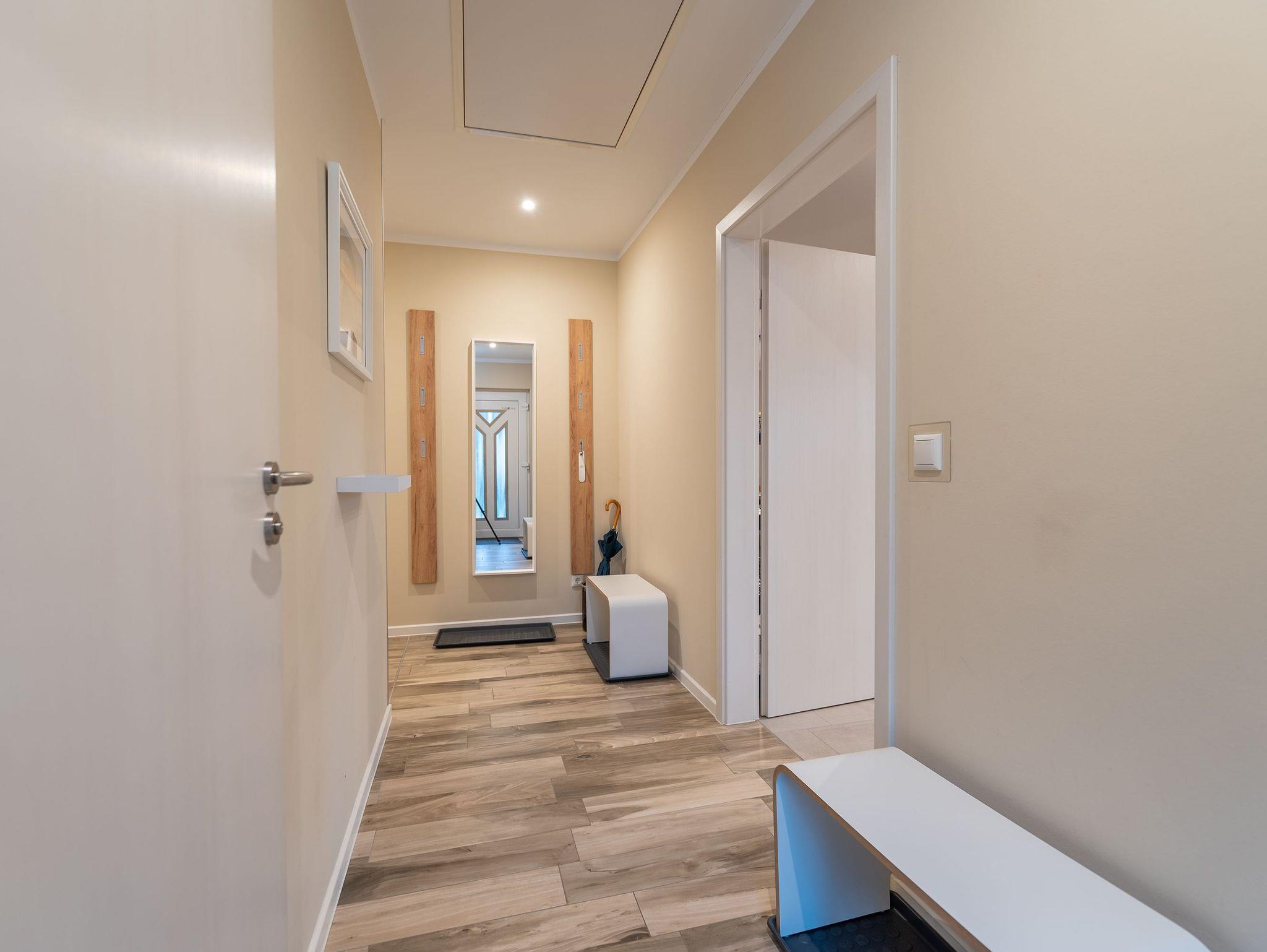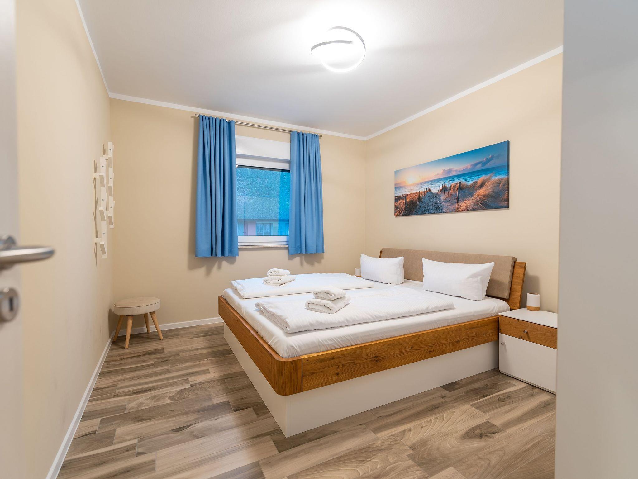 Die voll ausgestattete Küche lässt keine Wünsche offen und verfügt über alle Annehmlichkeiten wie Geschirrspüler, Mikrowelle, Induktionsherd, Kaffeemaschine, Toaster, Wasserkocher und eine Kühl-/Gefrierkombination. Zwei separate Schlafzimmer bieten ruhige Rückzugsorte: eines mit einem KingSizeBett, Kommode und Fernseher; das andere mit einem Doppelbett und Kleiderschrank. Für zusätzliche Gäste bietet die Schlafcouch im Wohnzimmer Platz für zwei Personen. Für Unterhaltung sorgen die Fernseher mit kostenfreiem Zugang zu Netflix und Disney+.