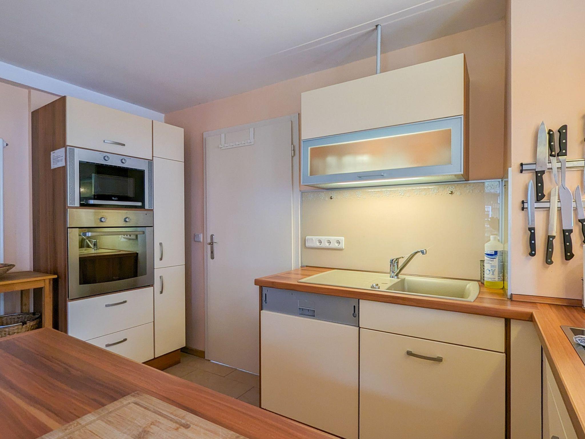 Die Küche bietet viel Platz und Möglichkeiten, um gemeinsam zu kochen und Zeit zu verbringen. Auf der Sonnenterrasse kann gemeinsam gespielt und entspannt werden, im Übergang zum naturbelassenen Garten. Für Entertainment sorgt ein moderner Smart-TV, sowie ein Radio mit CD-Player und einige Bücher. WLAN gibt es kostenfrei in allen Räumen.