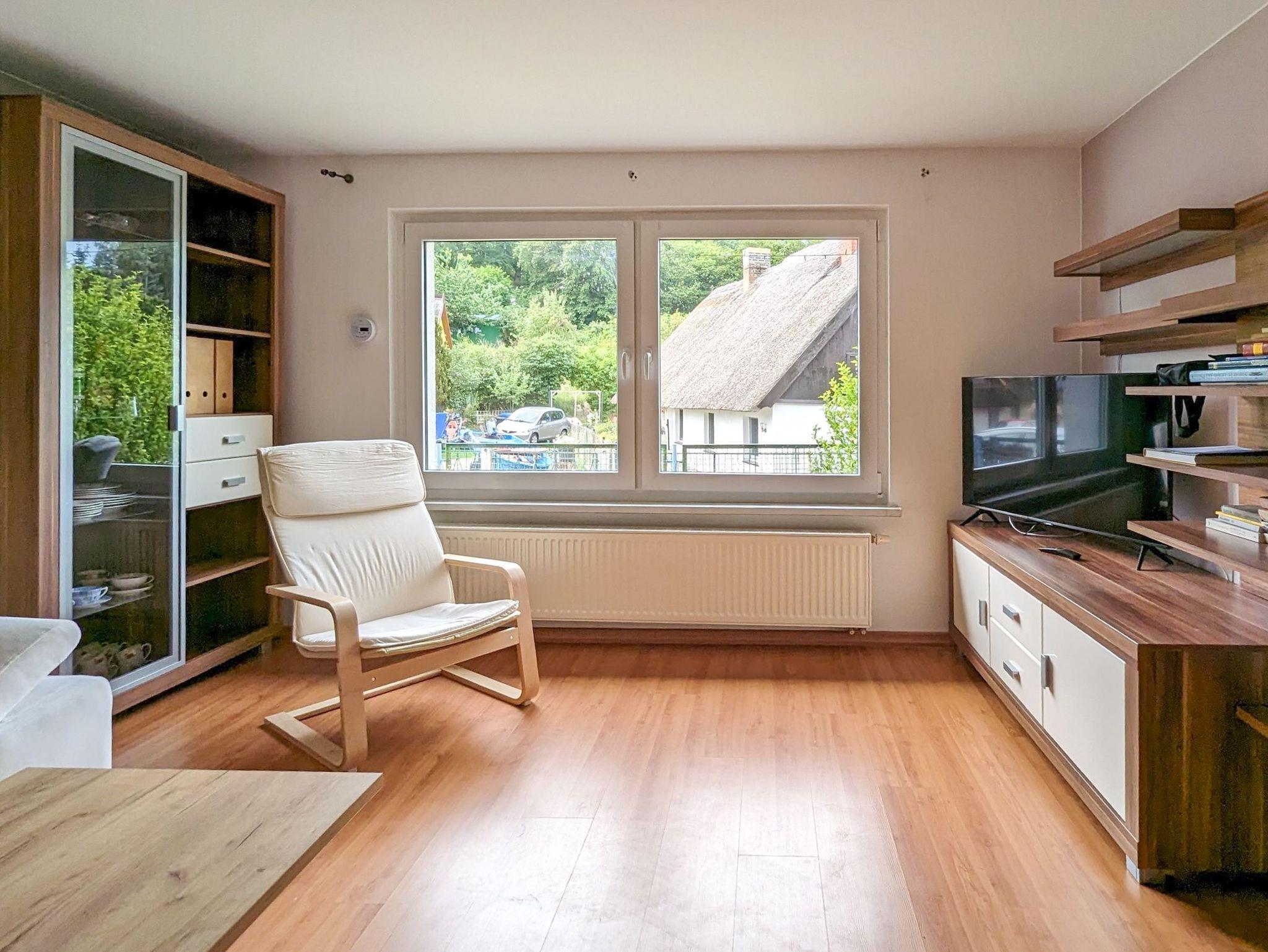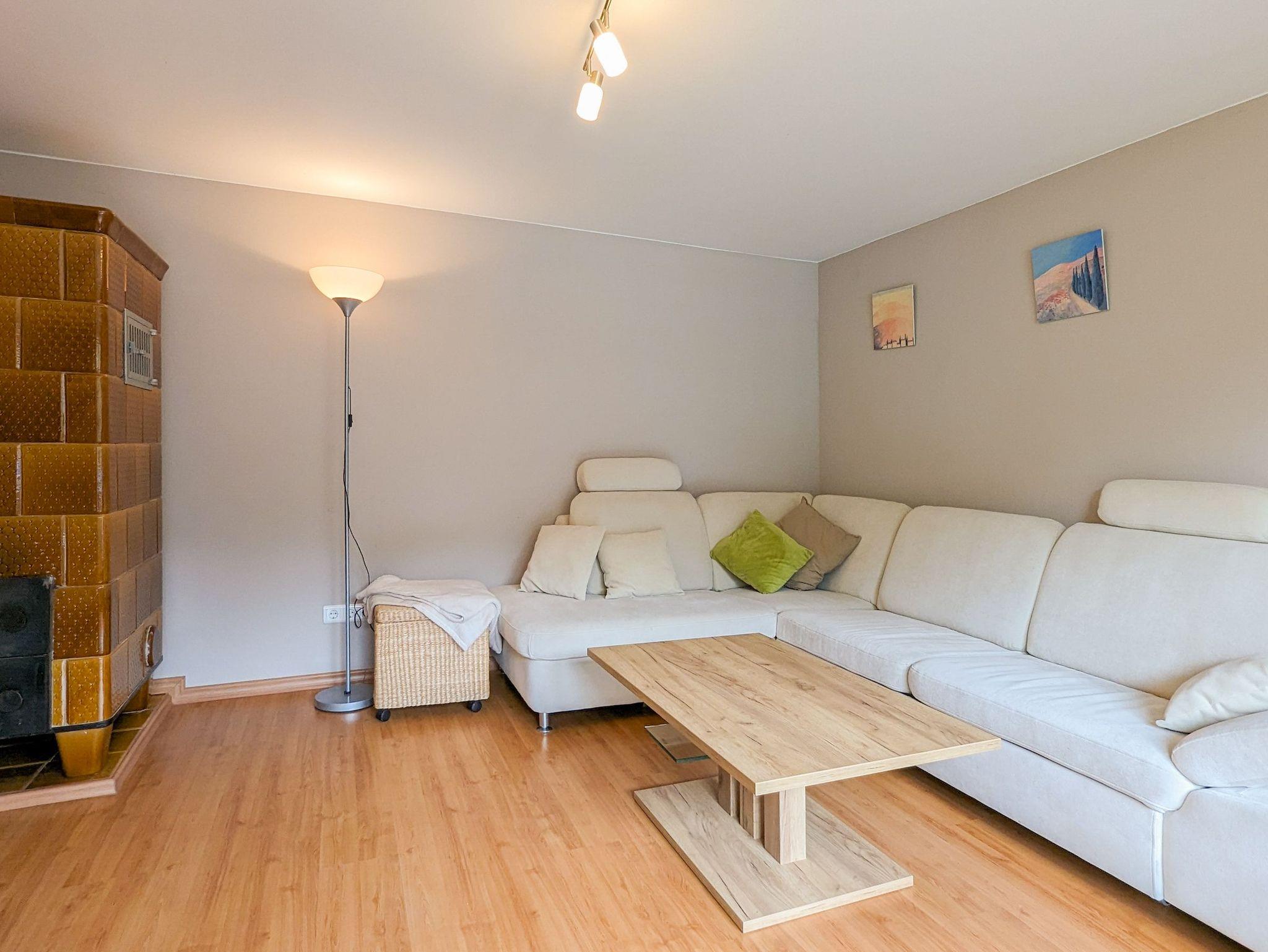 Sollte mal etwas kühl sein auf Deuschlands Sonneninsel, so seht im Wohnzimmer zusätzlich zur Heizung ein Kachelofen für kuschlige Wäme bereit.